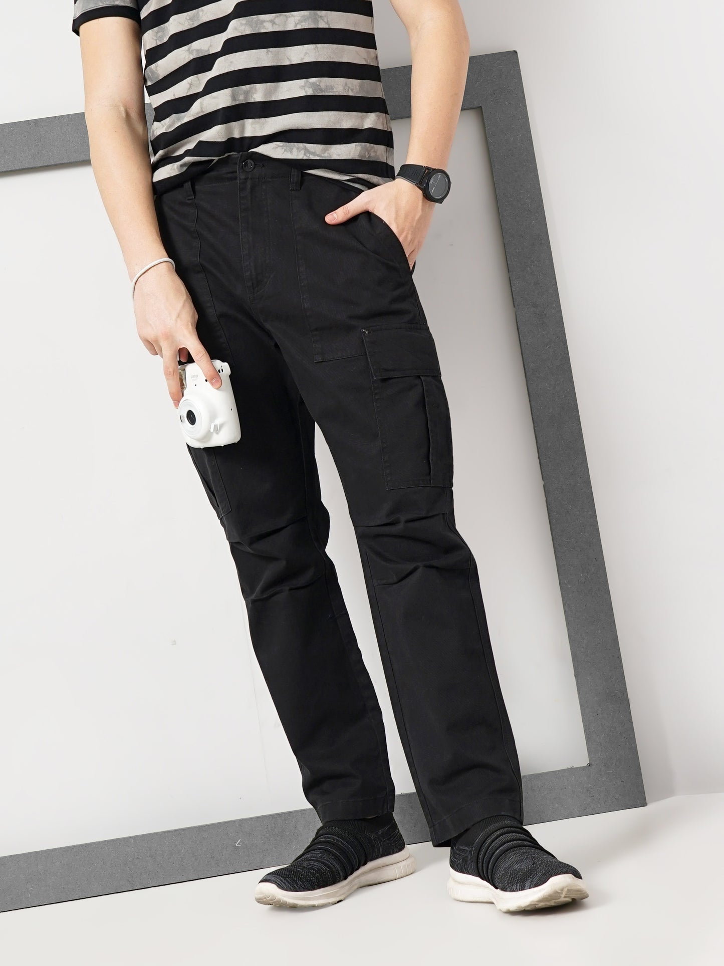 Discover comfort and style with Celio's black solid straight fit cotton twill cargos for men. Ideal for casual occasions, these versatile pants are a wardrobe essential. Disclaimer: All other items in the image are only for display purposes and will not be a part of the delivery content. Product colour may slightly vary due to photographic lighting sources. Country of Origin - India.p> GOANDER