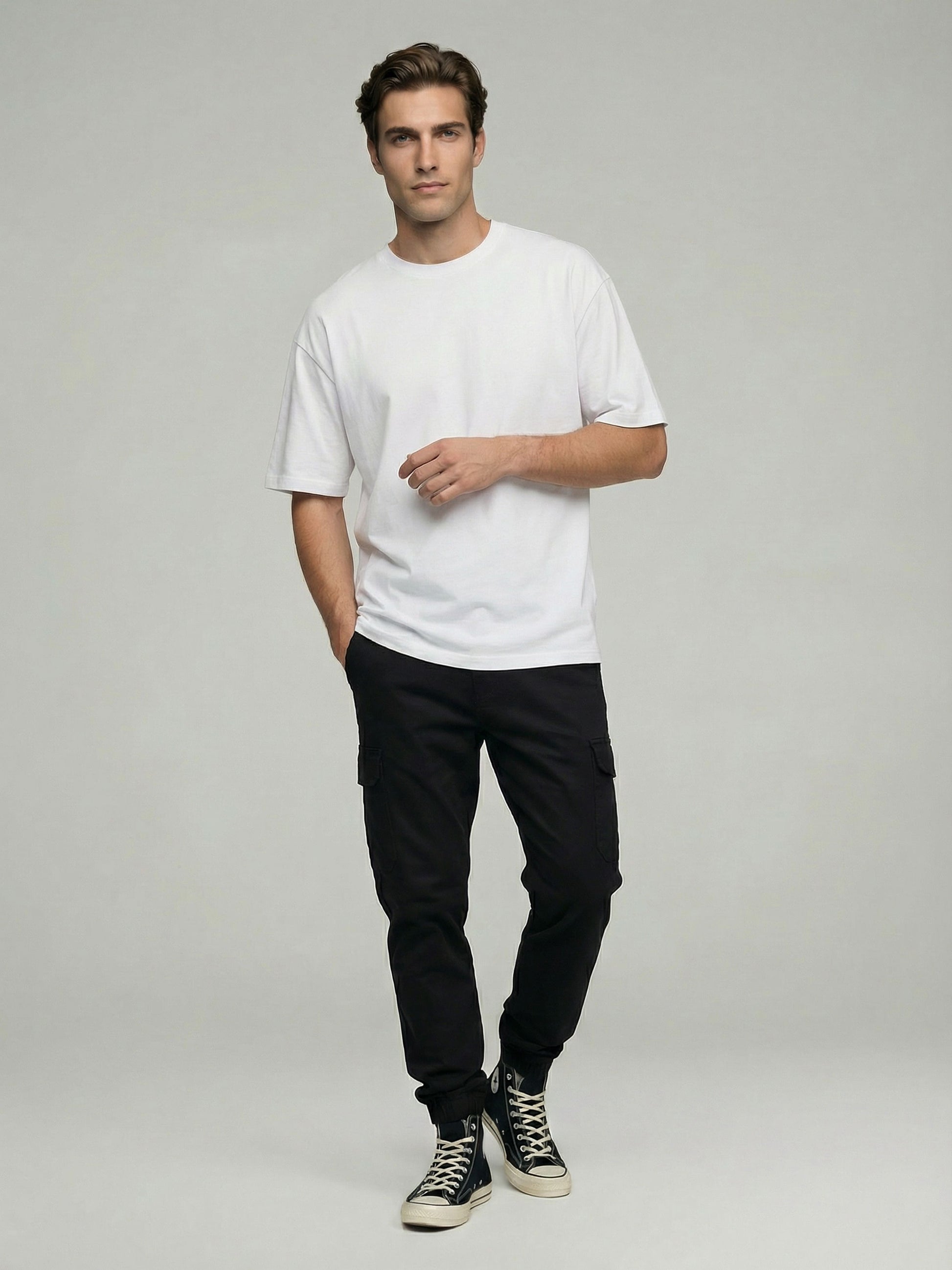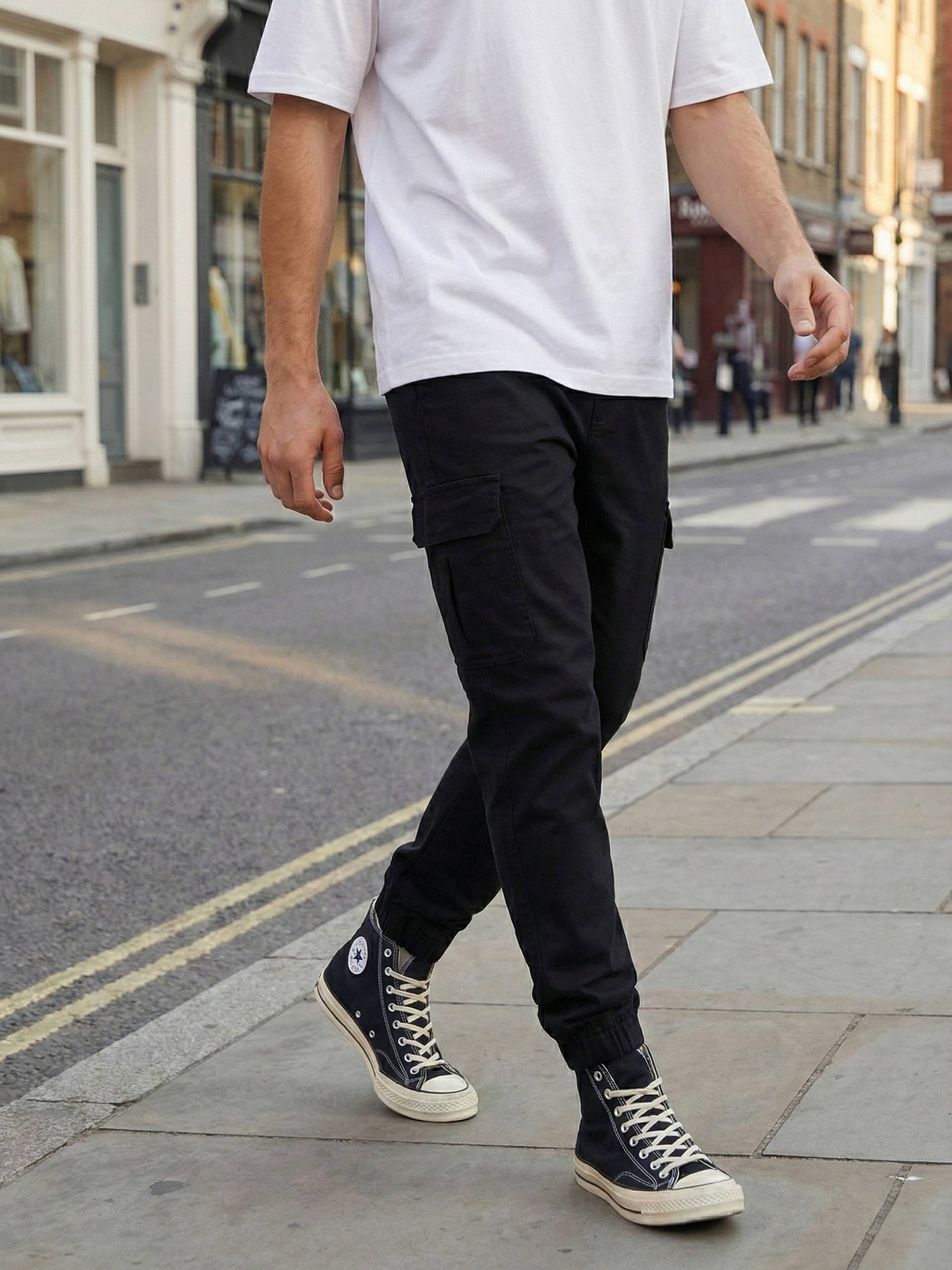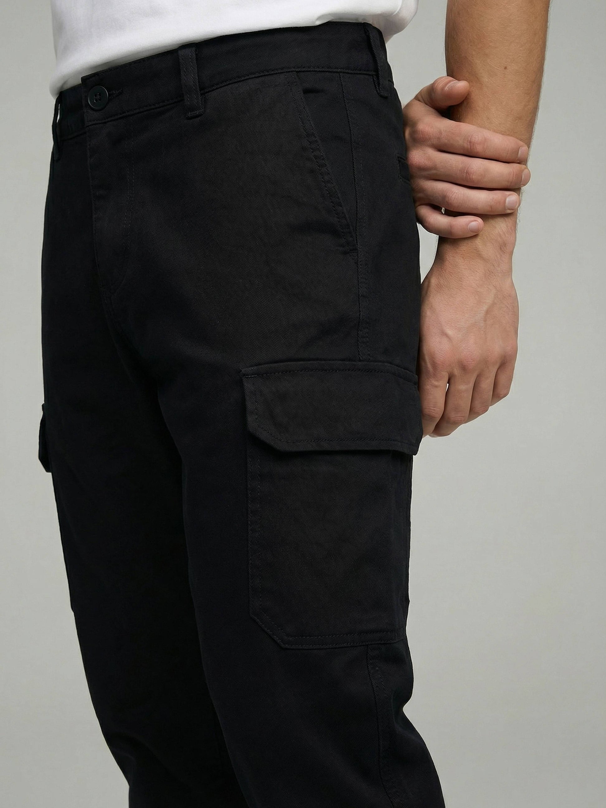 Discover the Celio Men Black Solid Straight Cotton Cargo Trousers, perfect for casual outings. Crafted from comfortable cotton, these versatile trousers combine style and function for any man. Disclaimer: All other items in the image are only for display purposes and will not be a part of the delivery content. Product colour may slightly vary due to photographic lighting sources. Country of Origin - India.