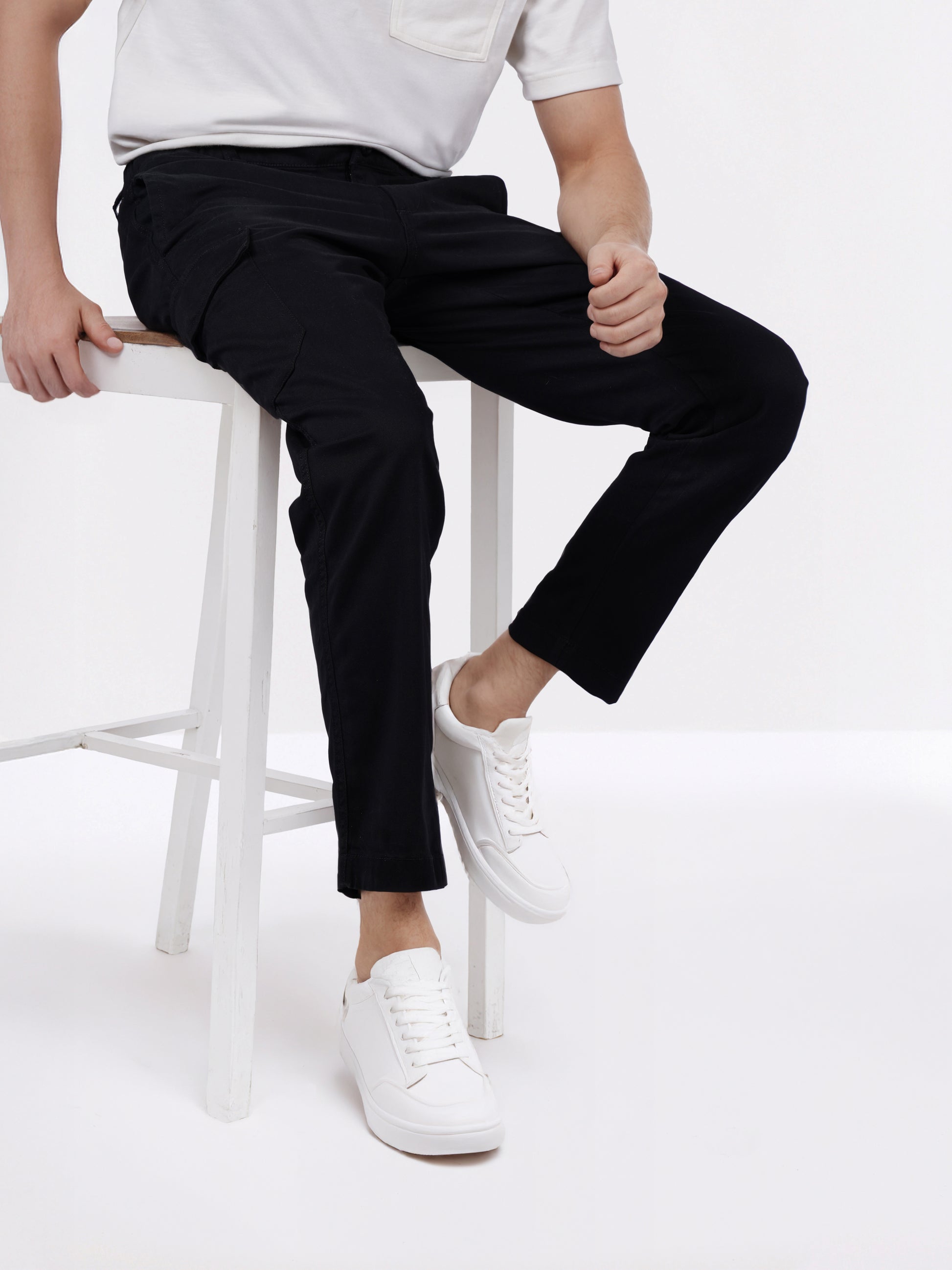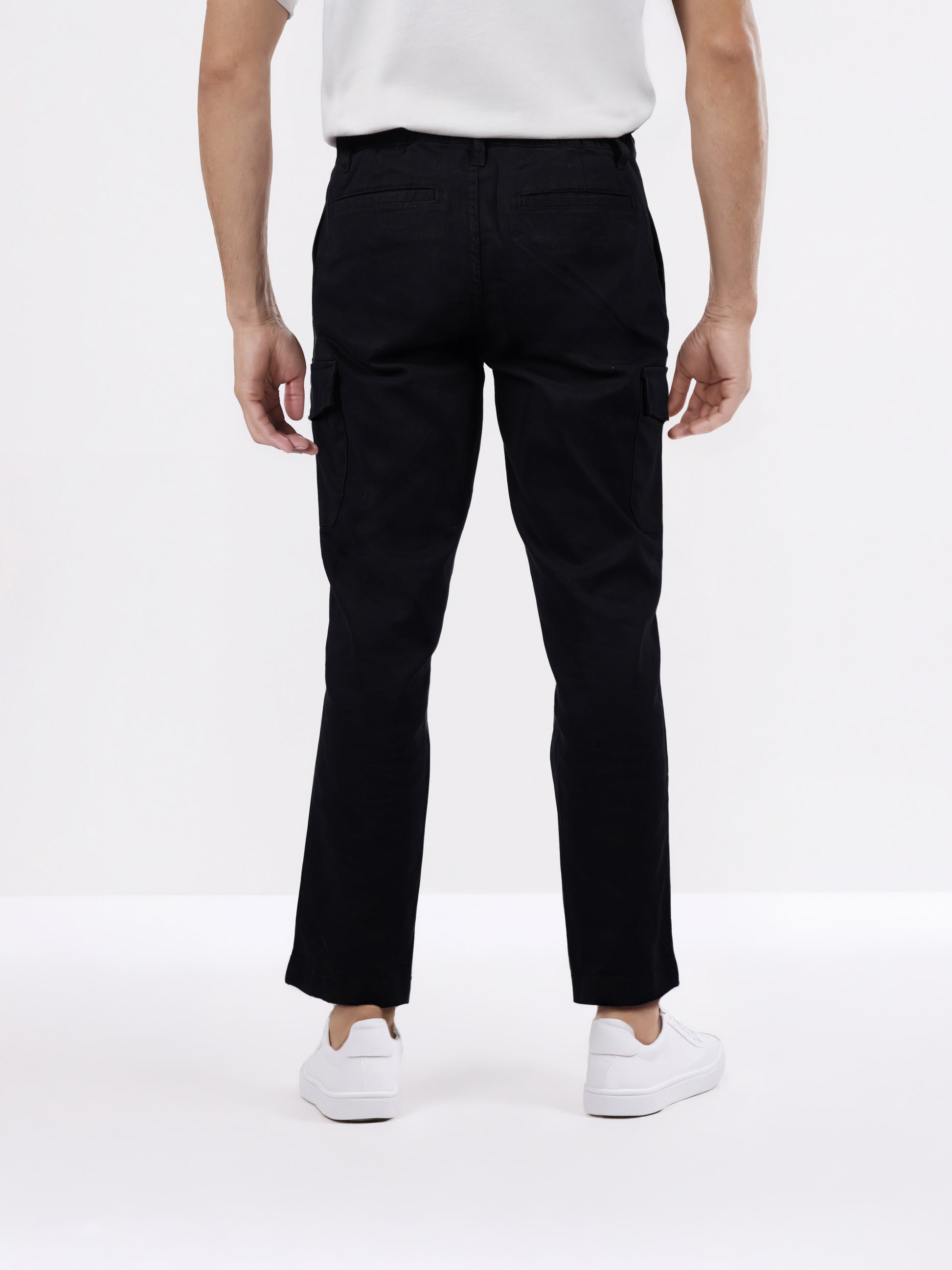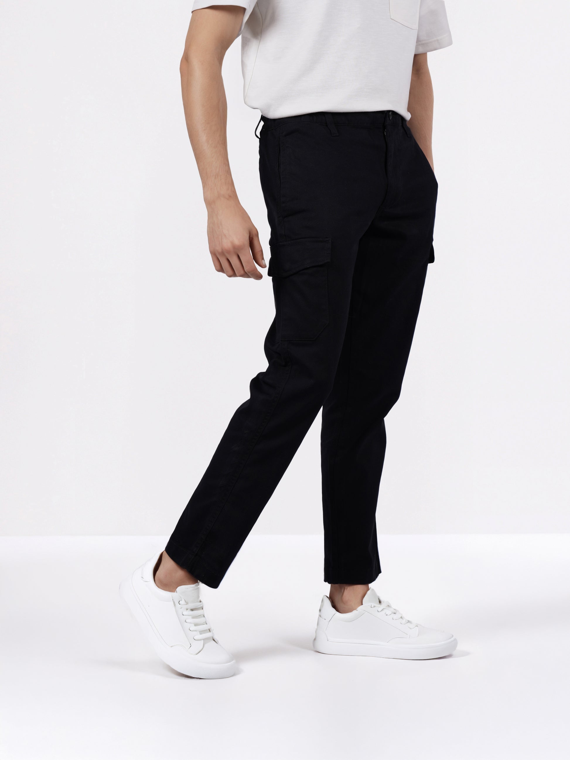 Elevate your casual style with Celio's black solid cargo trousers for men, crafted from comfortable cotton and designed for a straight fit. Perfect for everyday wear. Disclaimer: All other items in the image are only for display purposes and will not be a part of the delivery content. Product colour may slightly vary due to photographic lighting sources. Country of Origin - India.