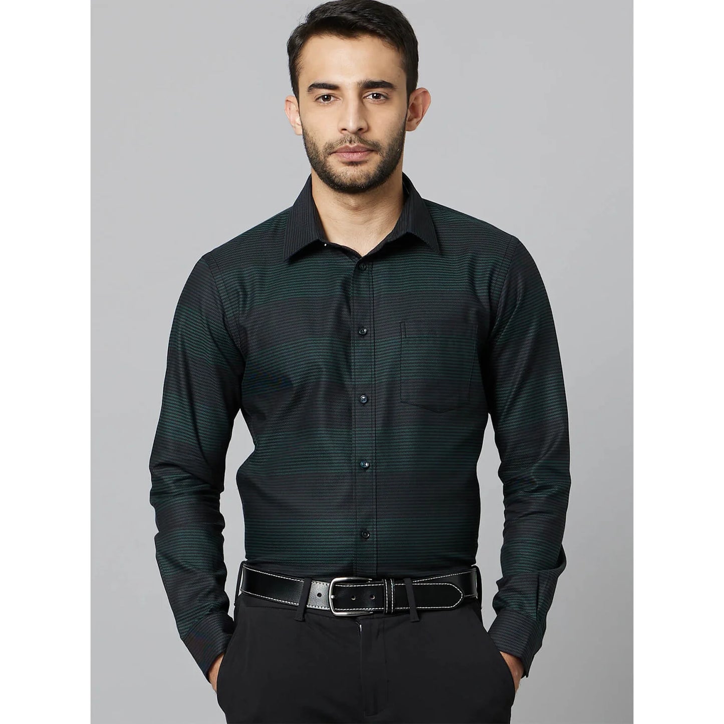 Discover the Celio Men's Black Stripes Premium Shirt, a stylish cotton piece designed for casual occasions. Featuring long sleeves, this shirt combines comfort with a trendy look. Disclaimer: All other items in the image are only for display purposes and will not be a part of the delivery content. Product colour may slightly vary due to photographic lighting sources. Country of Origin - India.