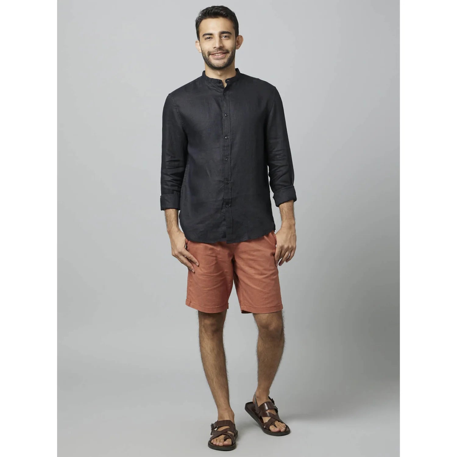 Elevate your casual style with the Celio Linen Solid Black Long Sleeves Shirt, crafted from premium linen for comfort. Perfect for men seeking a sophisticated look. Disclaimer: All other items in the image are only for display purposes and will not be a part of the delivery content. Product colour may slightly vary due to photographic lighting sources. Country of Origin - India.