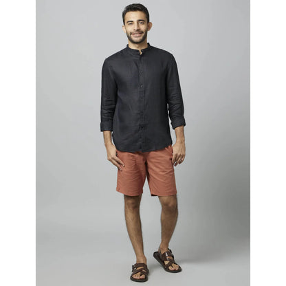 Celio* Solid Regular Fit Linen Black Shirt