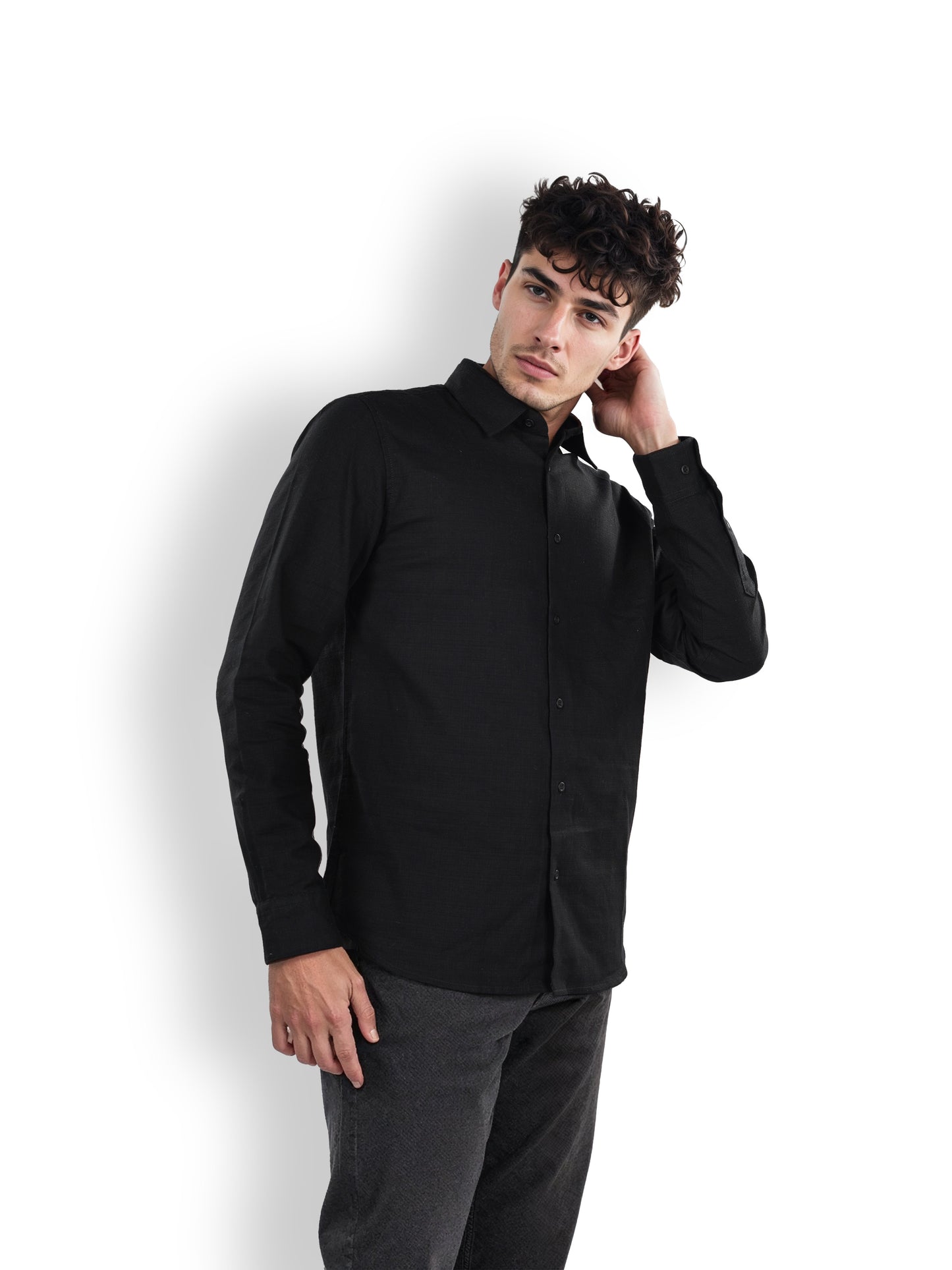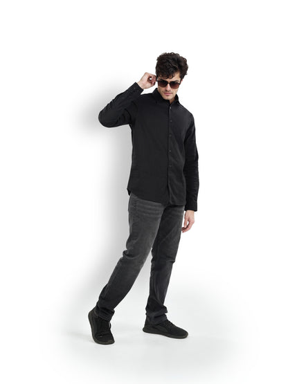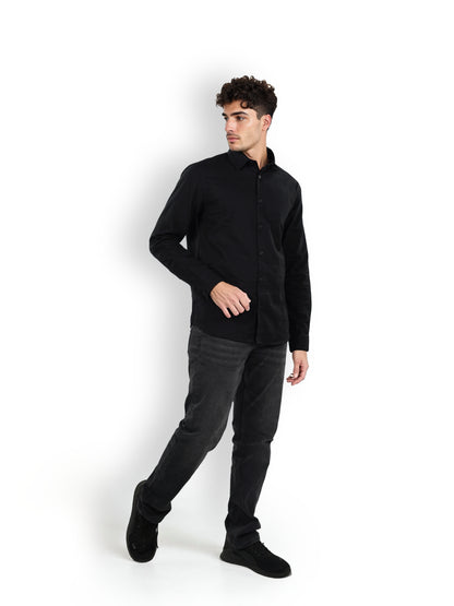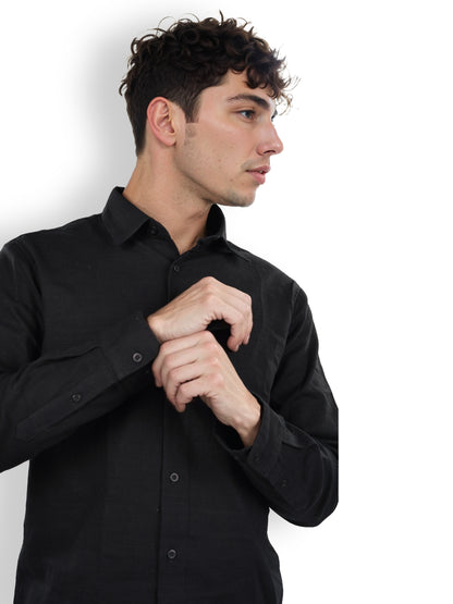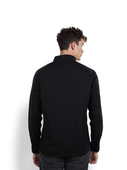 Celio* Solid Regular Fit Linen Black Shirt