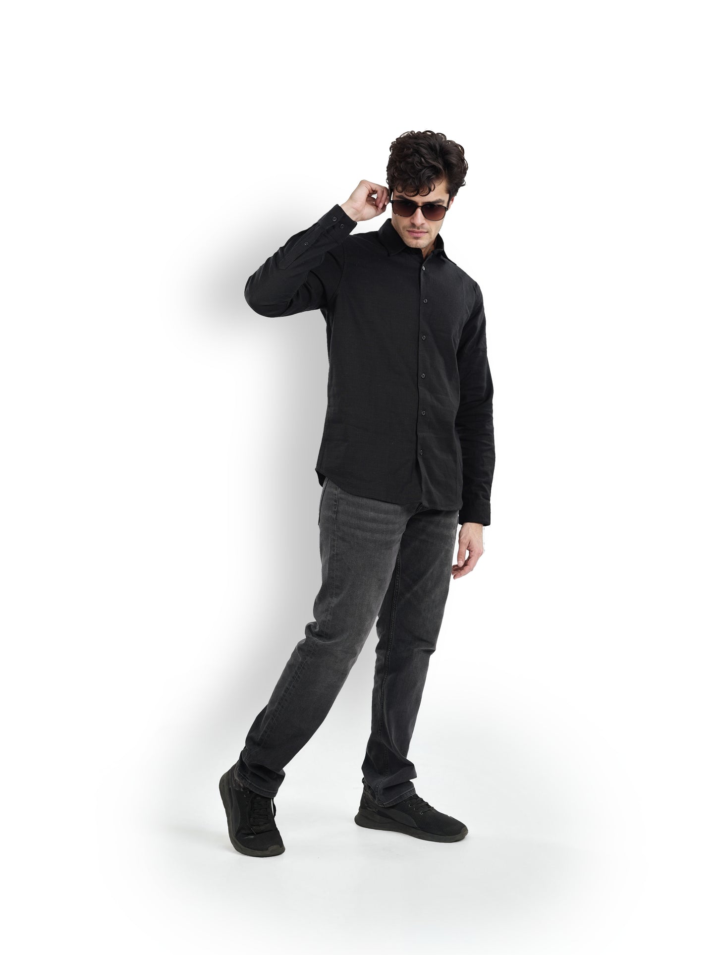 Elevate your casual wardrobe with the Men Black Spread Collar Solid Regular Fit Linen Shirt by Celio. Crafted from breathable linen, it features long sleeves and a sleek black design. Disclaimer: All other items in the image are only for display purposes and will not be a part of the delivery content. Product colour may slightly vary due to photographic lighting sources. Country of Origin - India.