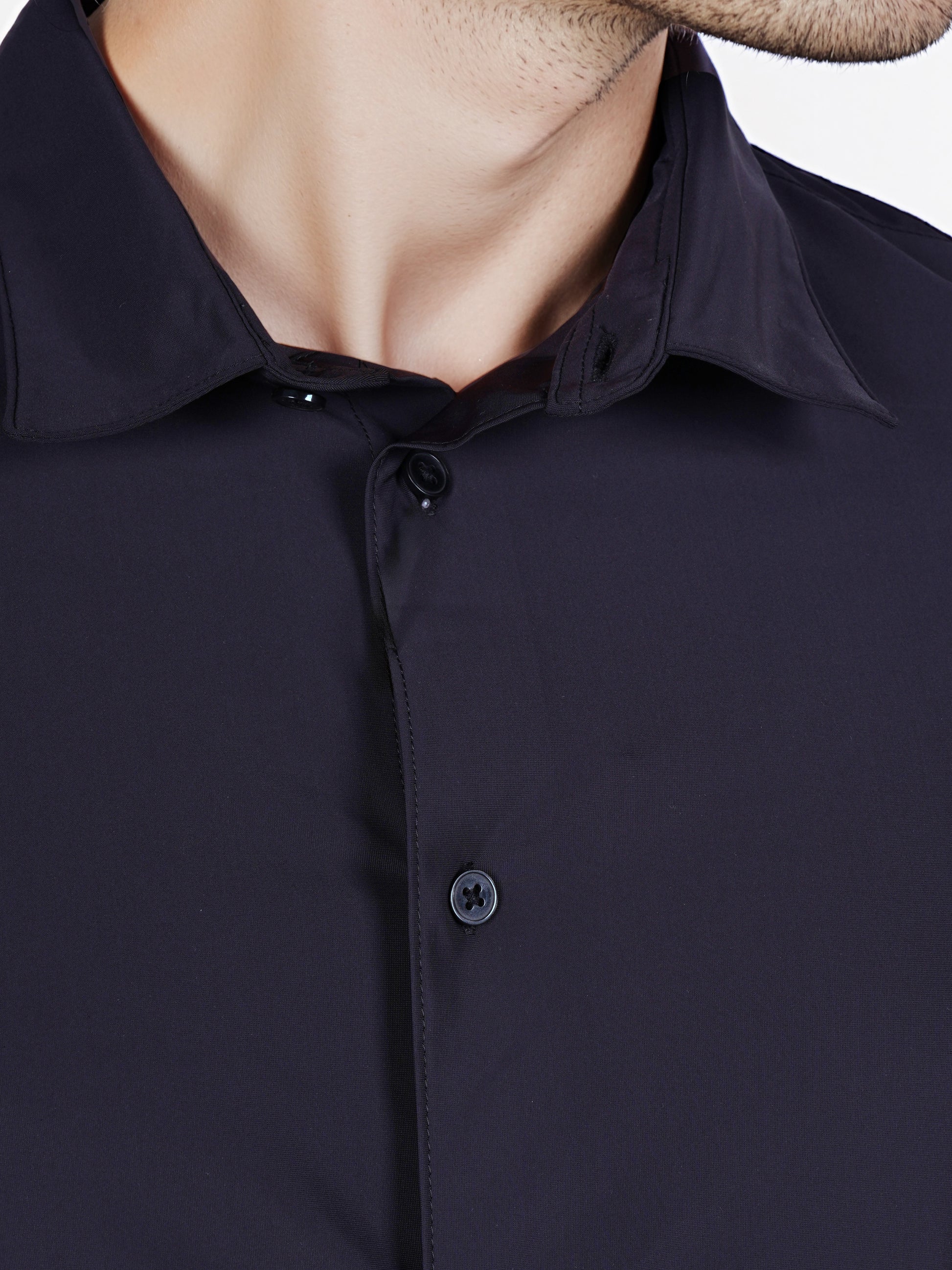 Celio* Solid Slim Fit Poly-Cotton Black Shirt