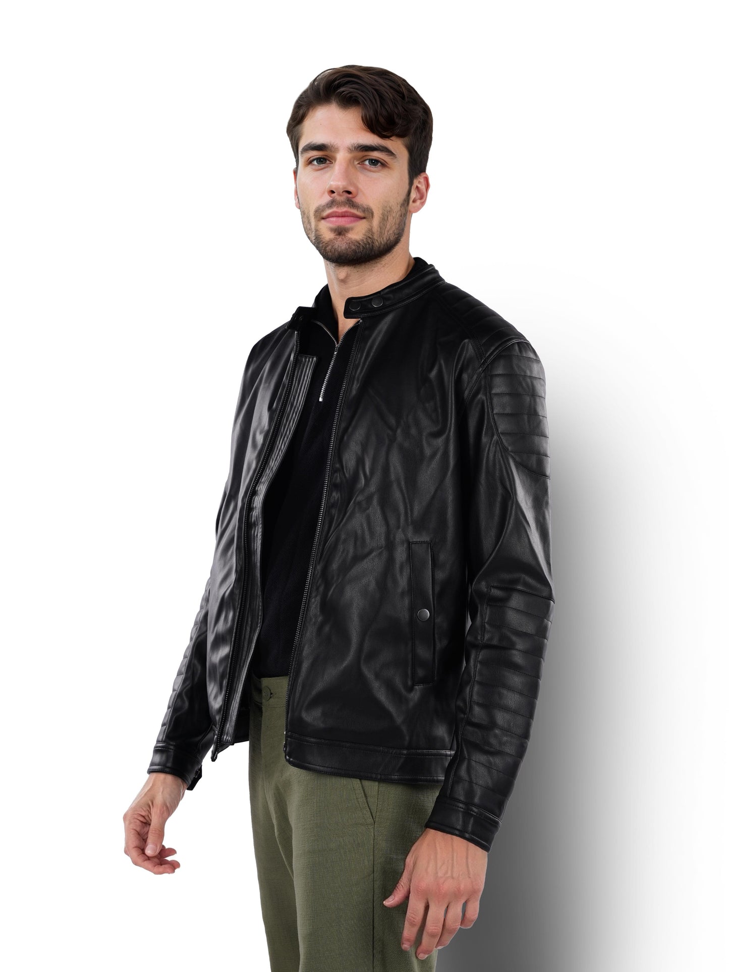Elevate your casual style with the Celio men’s black biker jacket. Made of durable polyamide, it features a mandarin collar and long sleeves for a modern, regular fit. Disclaimer: All other items in the image are only for display purposes and will not be a part of the delivery content. Product colour may slightly vary due to photographic lighting sources. Country of Origin - India.