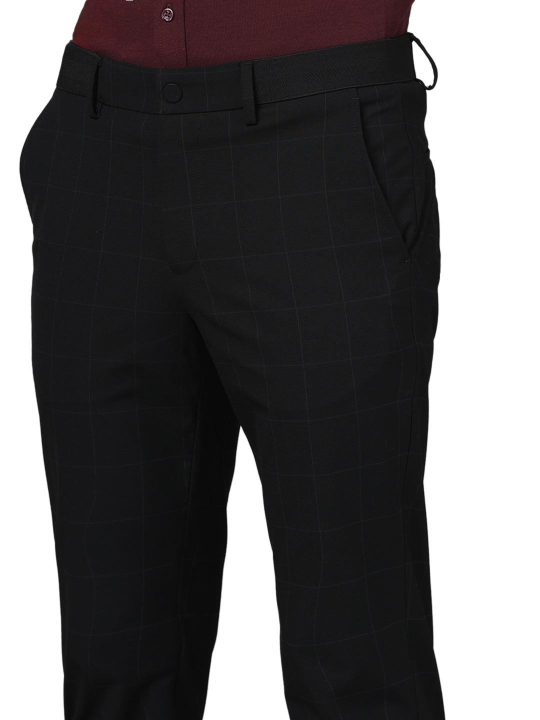 Elevate your casual wardrobe with Celio's black checked slim-fit Trouser. Crafted from durable polyester, these formal Trouser offer style and comfort for any occasion. Disclaimer: All other items in the image are only for display purposes and will not be a part of the delivery content. Product colour may slightly vary due to photographic lighting sources. Country of Origin - India.p> GOCARREAUIN