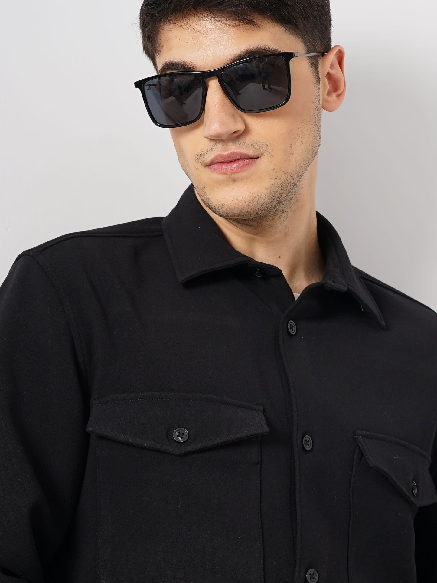 Shop the Celio Men Solid Regular Fit Overshirt in Black. This casual long-sleeve shirt made of polyester is perfect for any casual occasion, blending comfort and style effortlessly. Disclaimer: All other items in the image are only for display purposes and will not be a part of the delivery content. Product colour may slightly vary due to photographic lighting sources. Country of Origin - India.
