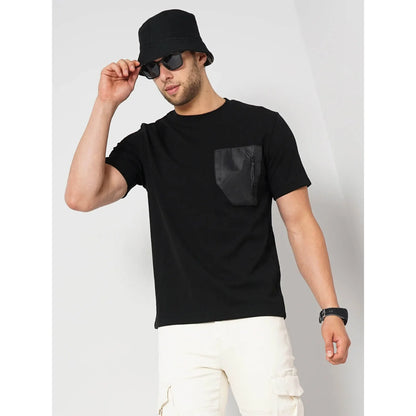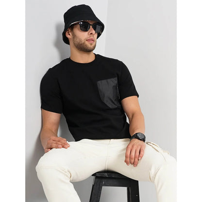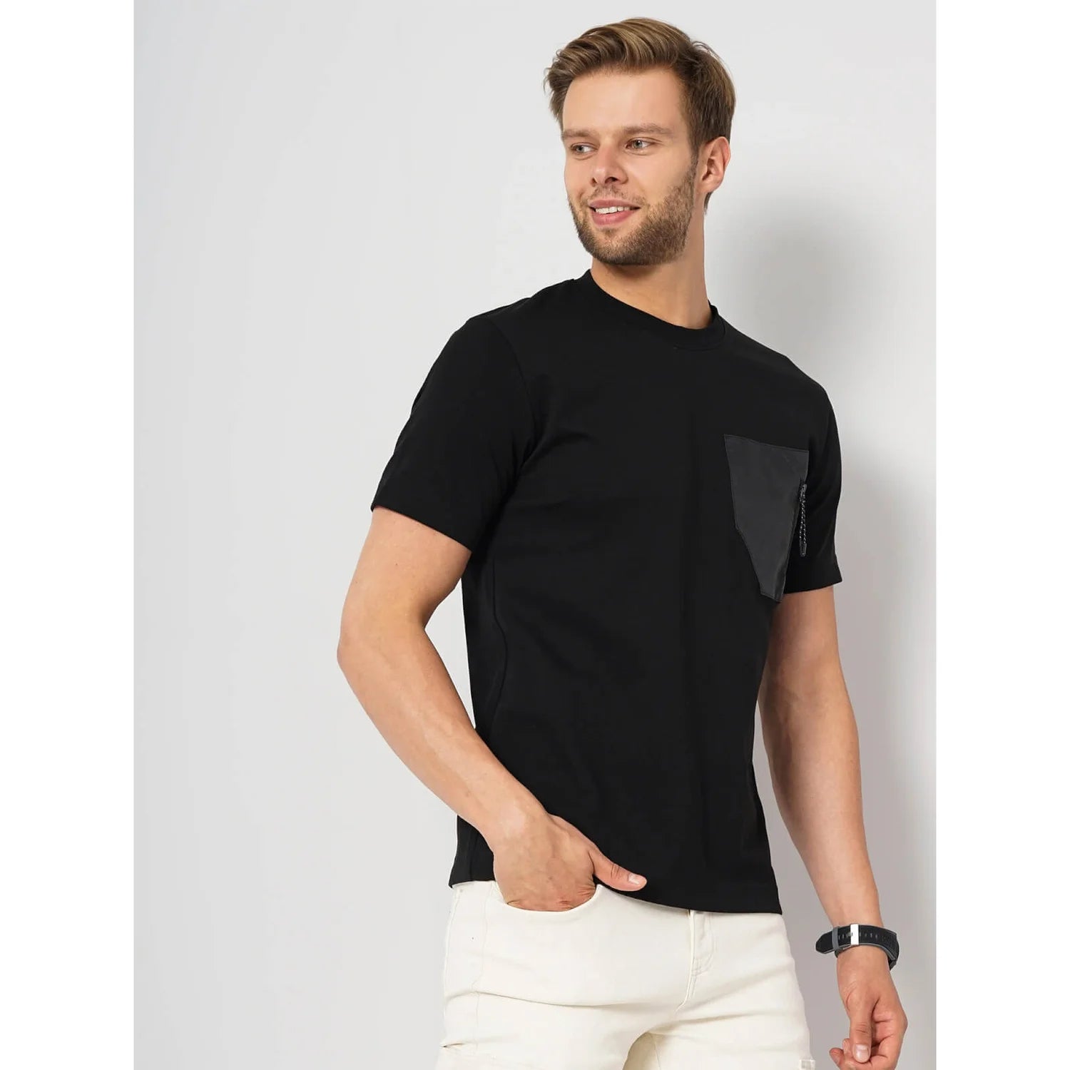 Celio* Solid Relaxed Fit Cotton-Blend Black T-Shirt