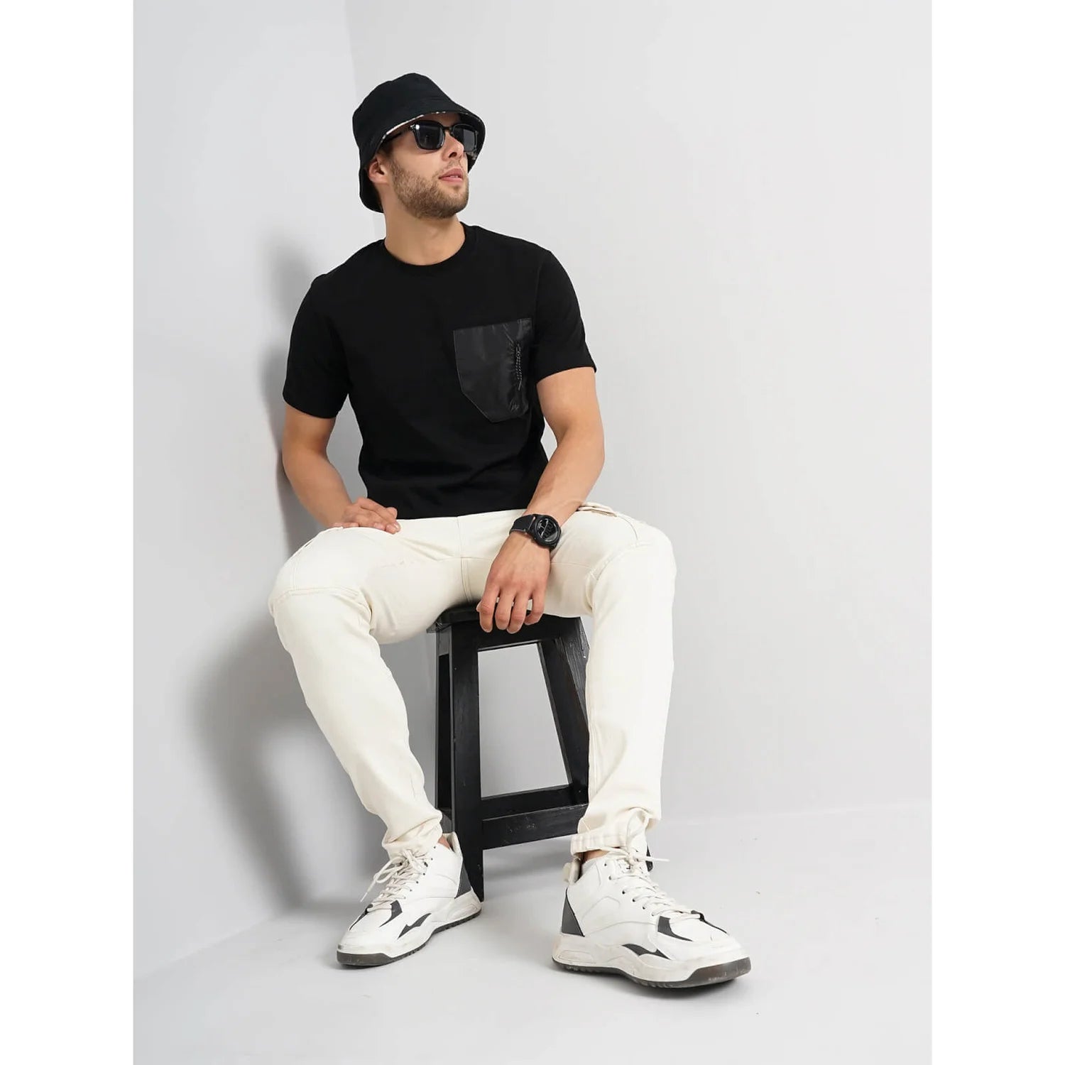 Elevate your casual wardrobe with the Celio Black Solid Cotton Blend T-Shirt. This cream-colored tee features short sleeves, perfect for everyday wear. Disclaimer: All other items in the image are only for display purposes and will not be a part of the delivery content. Product colour may slightly vary due to photographic lighting sources. Country of Origin - India.