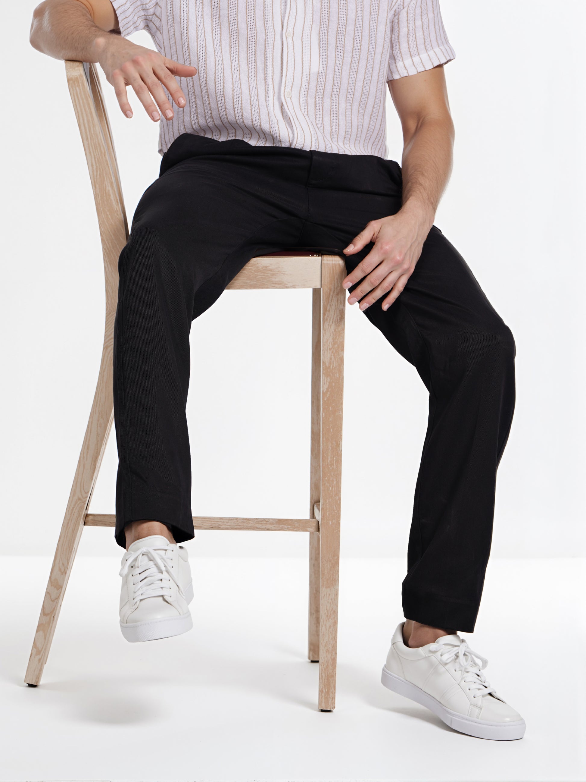 These Celio Men’s black trousers are crafted from Tencel for a comfortable fit. Ideal for casual occasions, they feature a solid design and a straight fit for a modern look. Disclaimer: All other items in the image are only for display purposes and will not be a part of the delivery content. Product colour may slightly vary due to photographic lighting sources. Country of Origin - India.