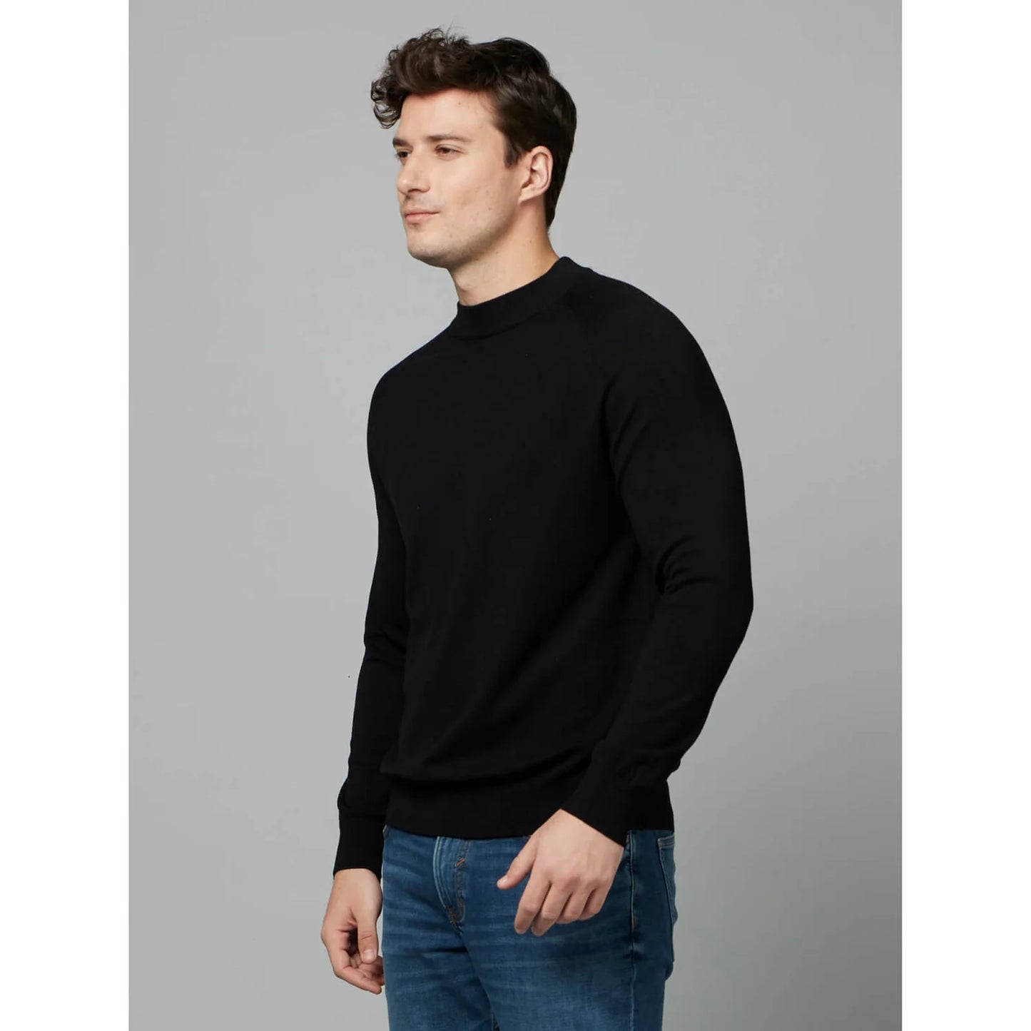 Celio* Solid Regular Fit Viscose-Blend Black Sweater