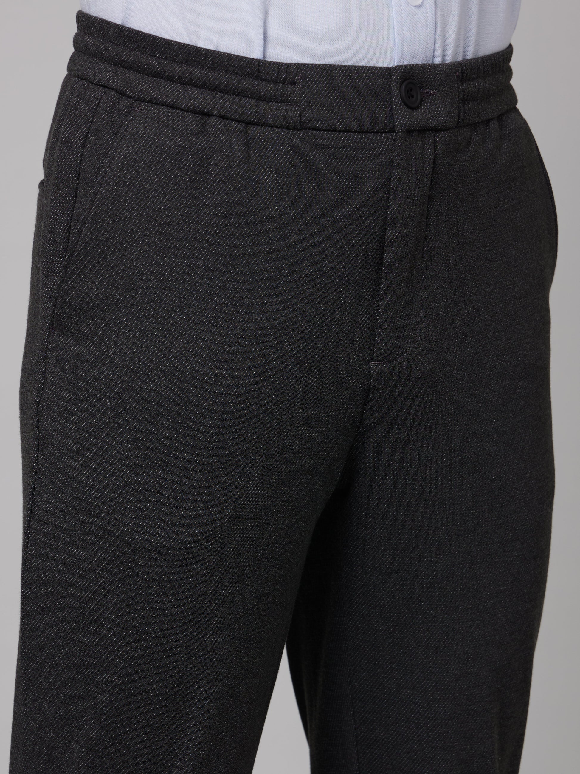 Celio* Men Black Solid Slim Fit Viscose-Blend Trousers