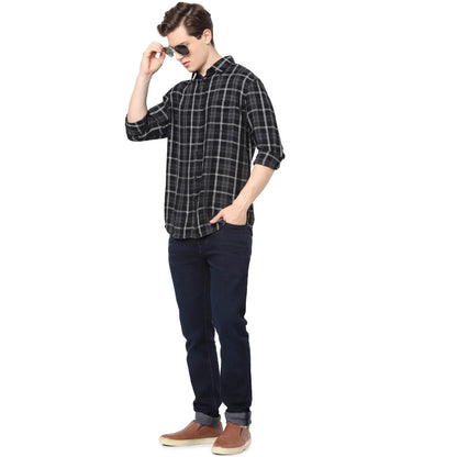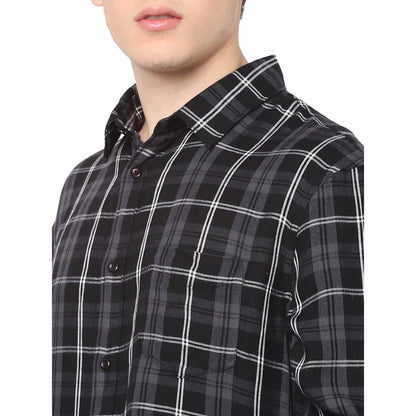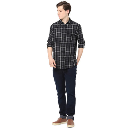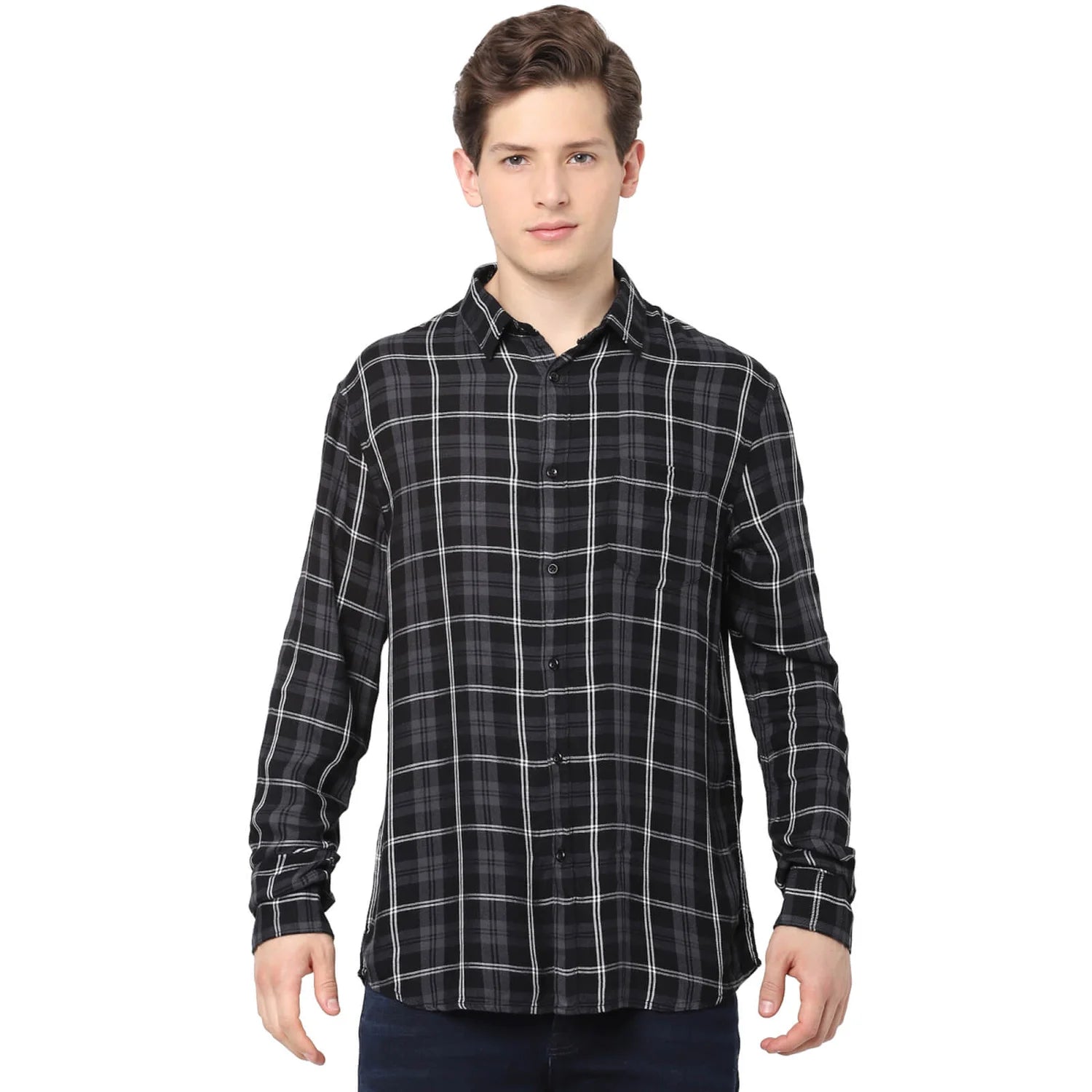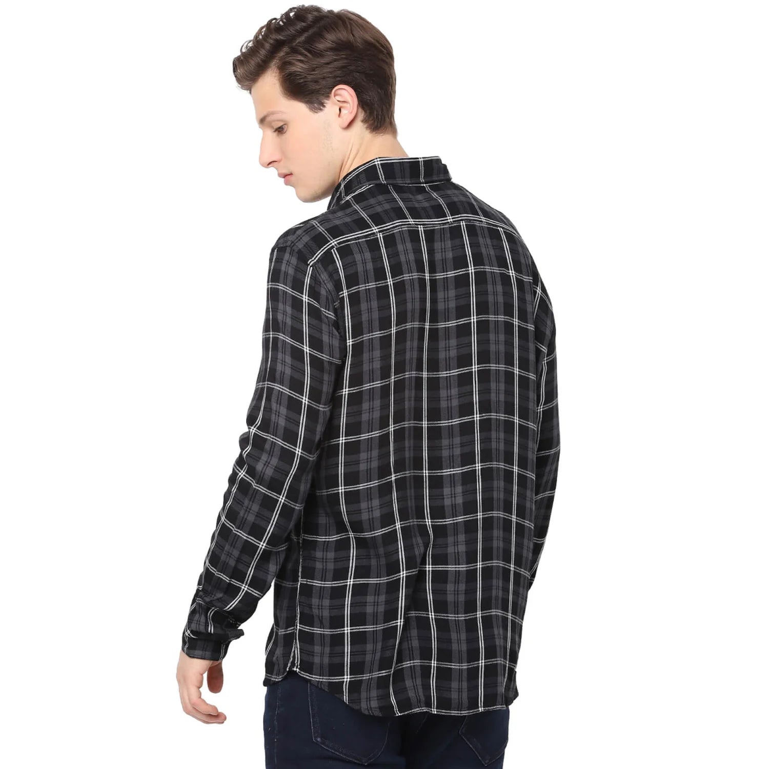 Elevate your casual look with the Celio Men's Black Checked Full Sleeves Shirt. Made from comfortable viscose, this stylish black shirt is perfect for any casual occasion. Disclaimer: All other items in the image are only for display purposes and will not be a part of the delivery content. Product colour may slightly vary due to photographic lighting sources. Country of Origin - India.