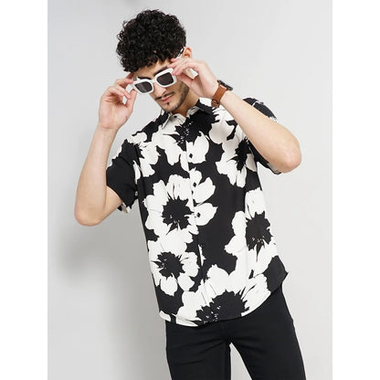 Celio* Floral Regular Fit Viscose Black Shirt