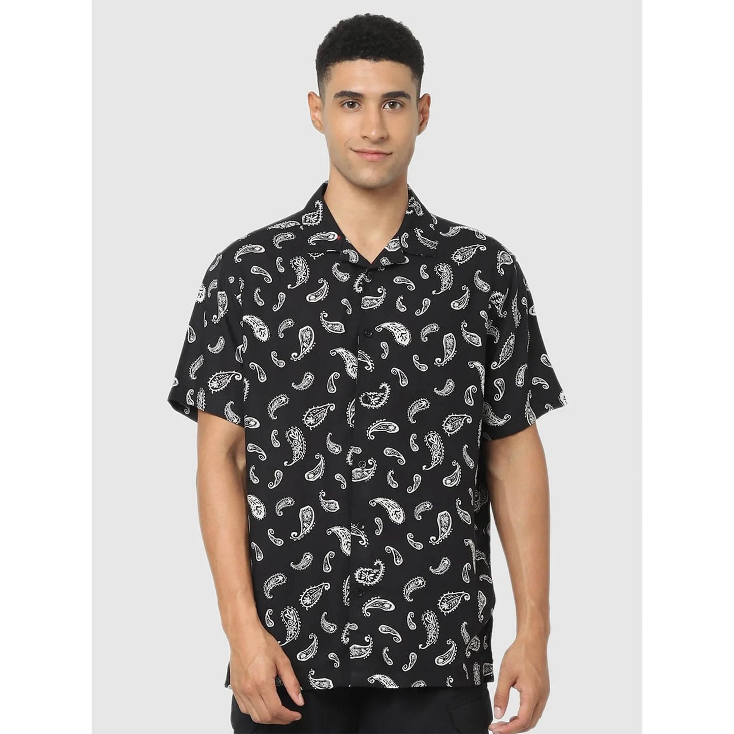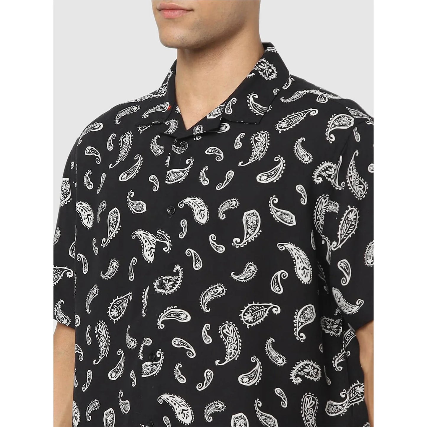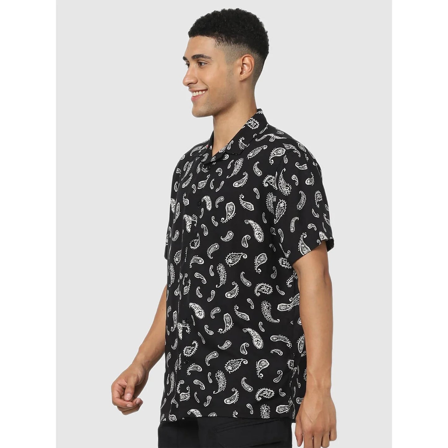 Celio* Paisley Regular Fit Viscose Black Shirt
