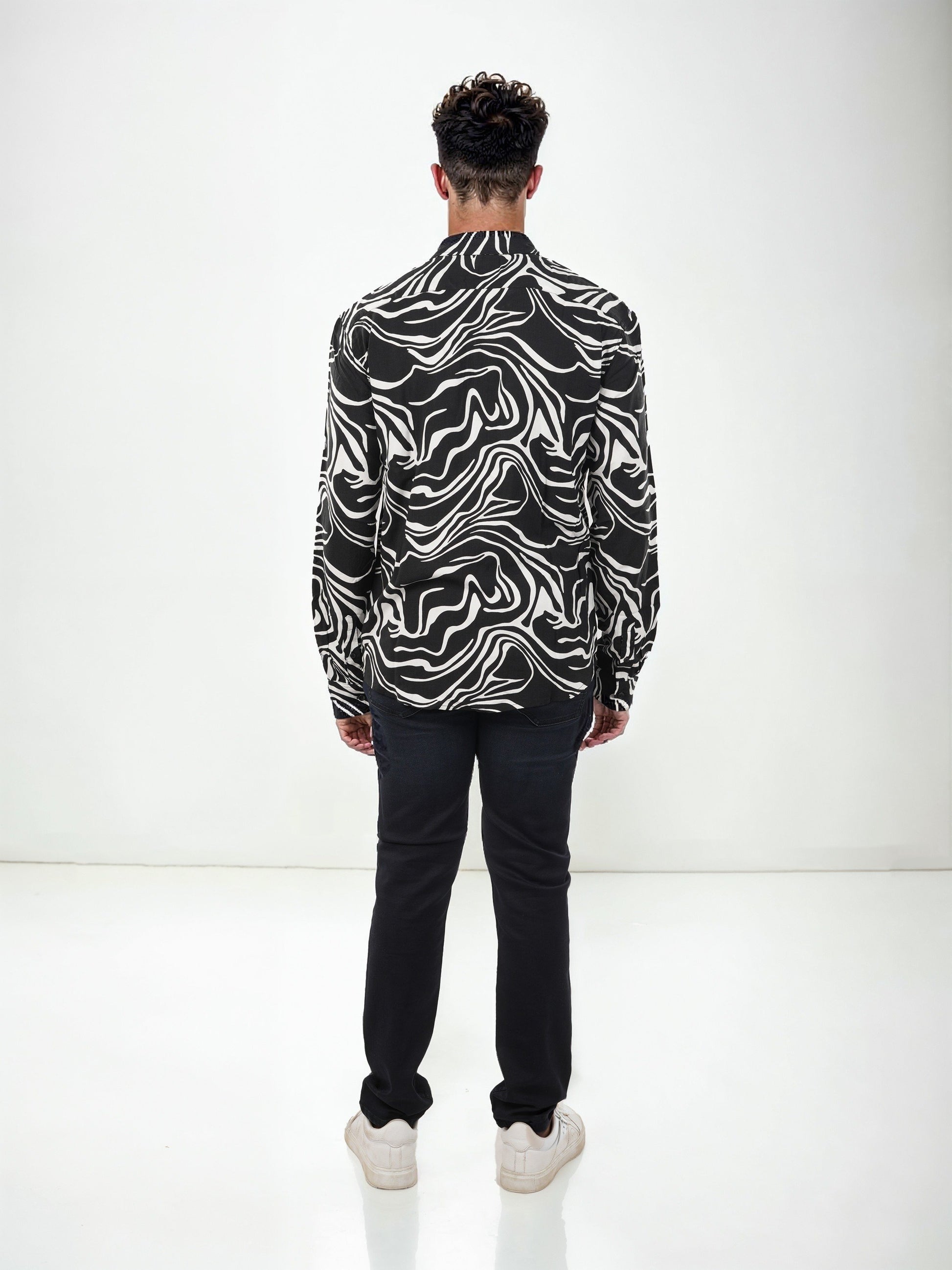 Men's black spread collar shirt by Celio, made of soft-touch viscose rayon. Perfect for casual occasions with long sleeves and a regular fit. Disclaimer: All other items in the image are only for display purposes and will not be a part of the delivery content. Product colour may slightly vary due to photographic lighting sources. Country of Origin - India.