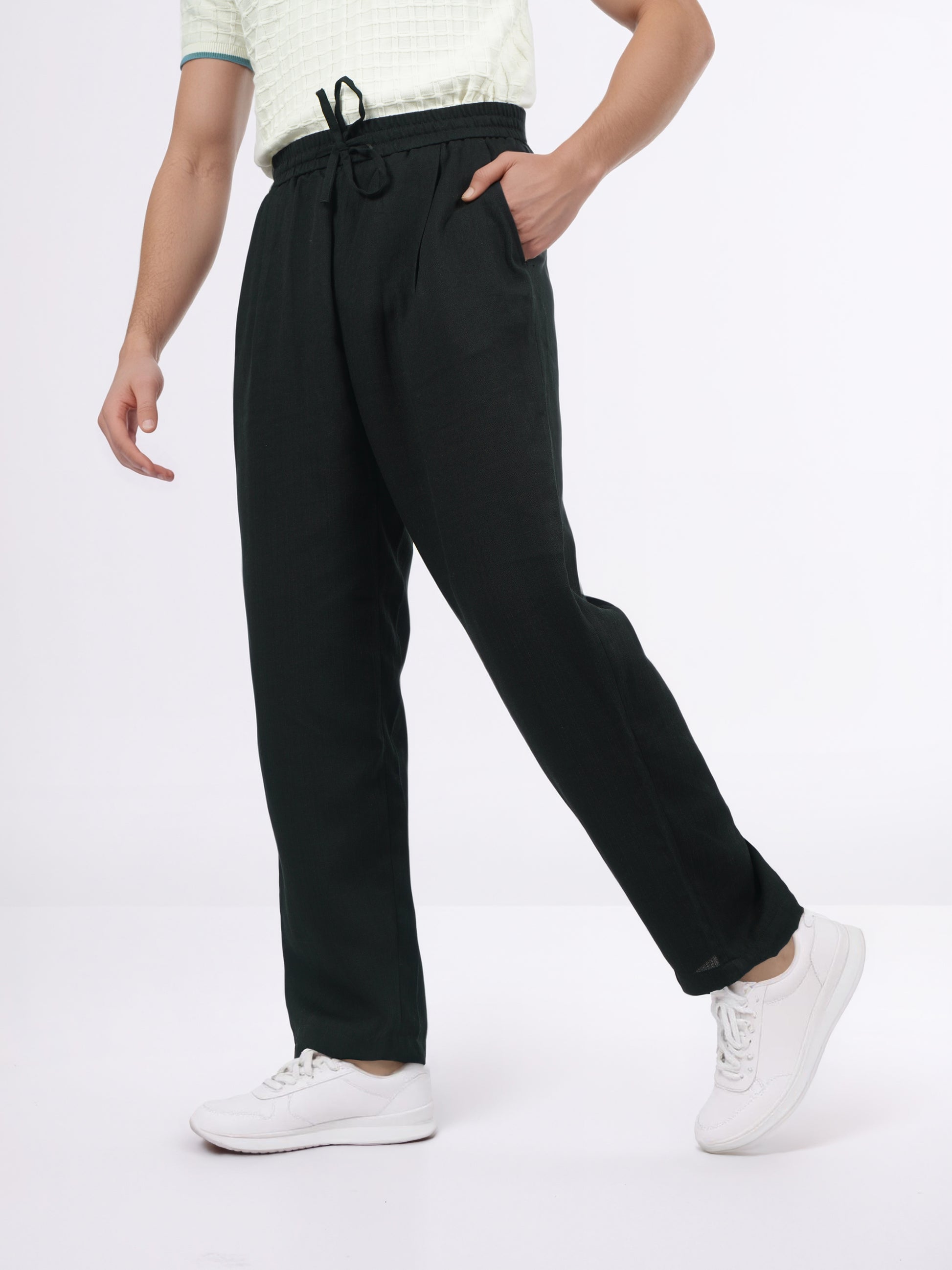 Celio* Men Black Solid Loose Fit Viscose Trousers