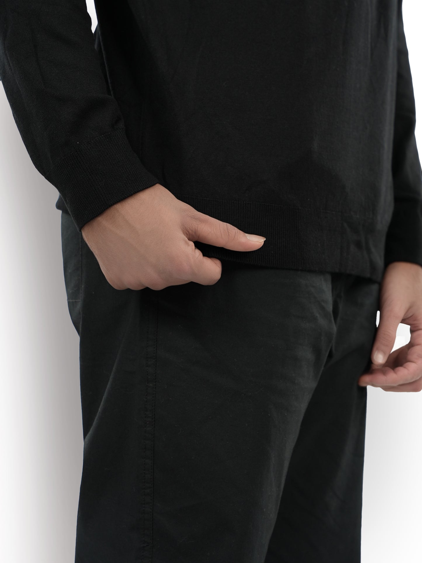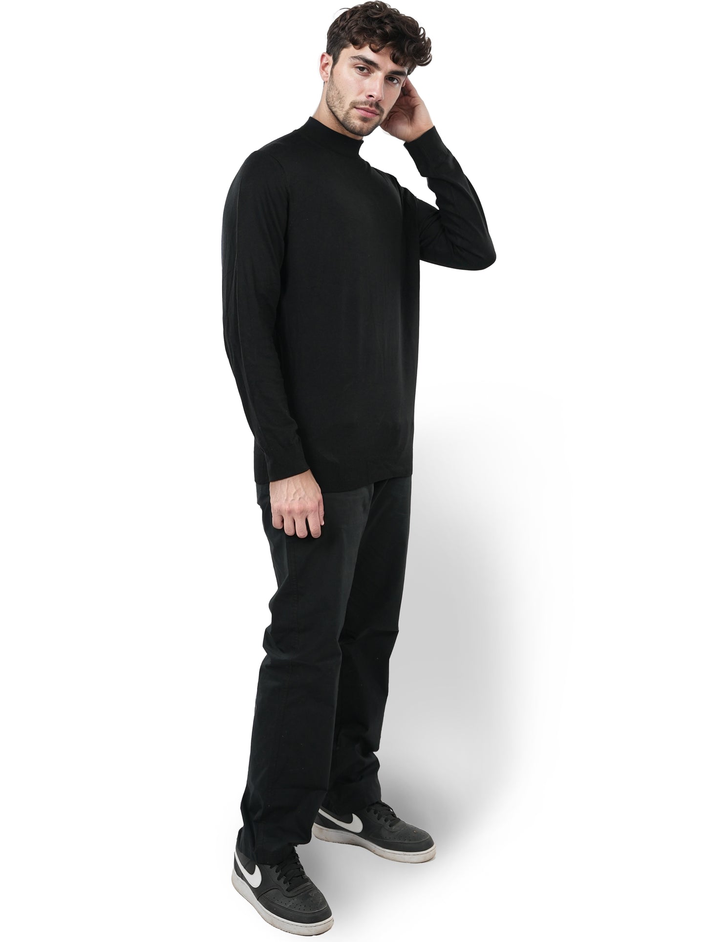 This men's black round neck sweater by Celio is crafted from soft viscose rayon, featuring long sleeves and a regular fit, perfect for a casual occasion. Disclaimer: All other items in the image are only for display purposes and will not be a part of the delivery content. Product colour may slightly vary due to photographic lighting sources. Country of Origin - India.