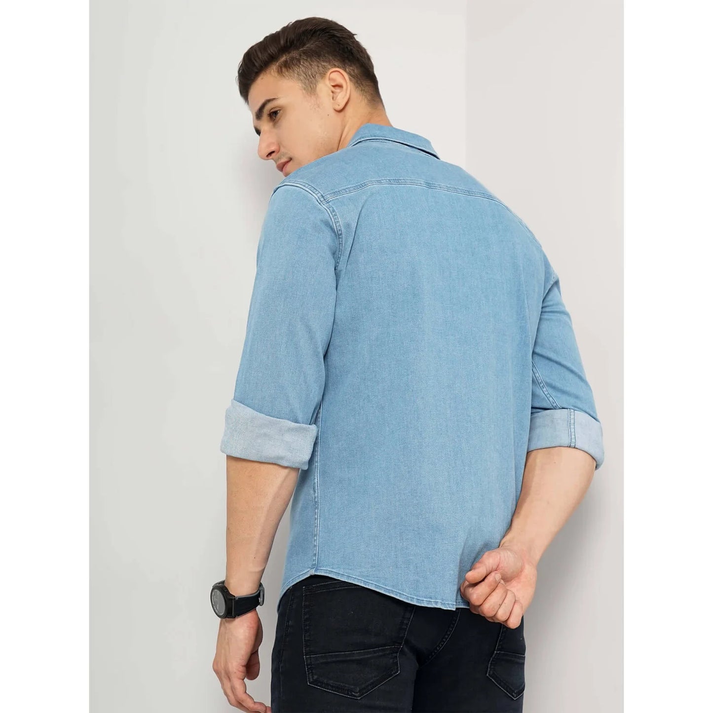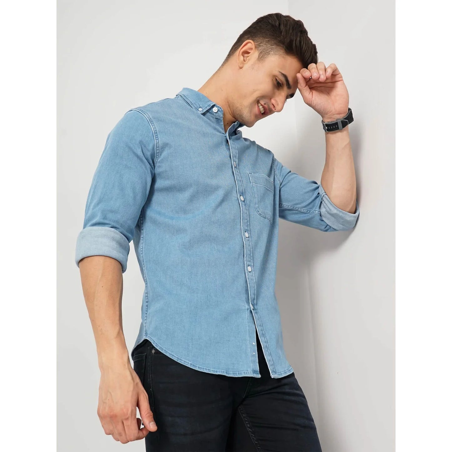 Elevate your casual style with the Celio Blue Cotton-Blend Denim Shirt. This Blue-colored, long-sleeve shirt is made from a comfortable cotton blend, perfect for men. Disclaimer: All other items in the image are only for display purposes and will not be a part of the delivery content. Product colour may slightly vary due to photographic lighting sources. Country of Origin - India.