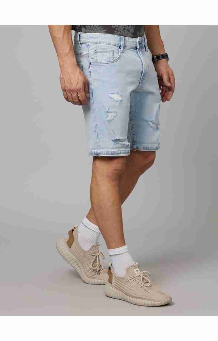 Discover the Celio Men's Blue Denim Bermuda Shorts in a trendy bleached style. Crafted from a comfortable cotton blend, these casual shorts are perfect for any laid-back occasion. Disclaimer: All other items in the image are only for display purposes and will not be a part of the delivery content. Product colour may slightly vary due to photographic lighting sources. Country of Origin - India.
