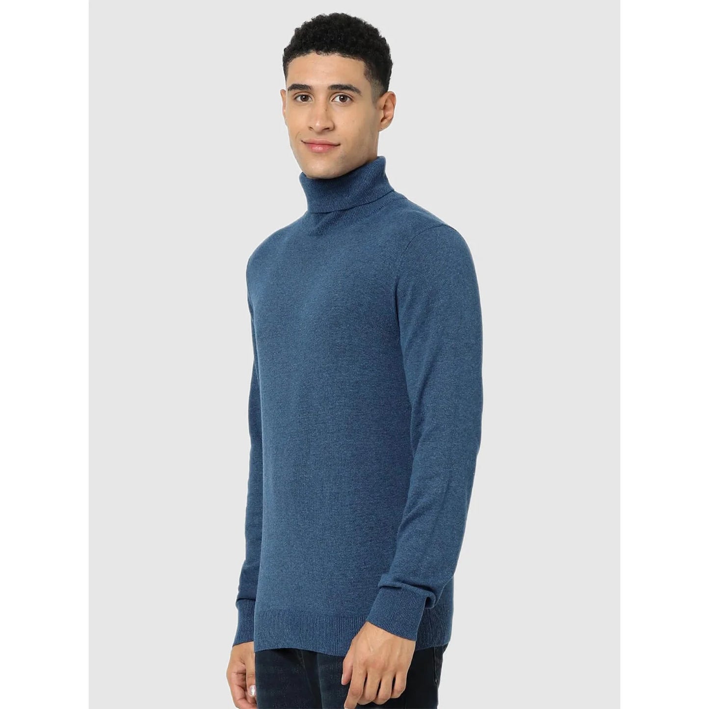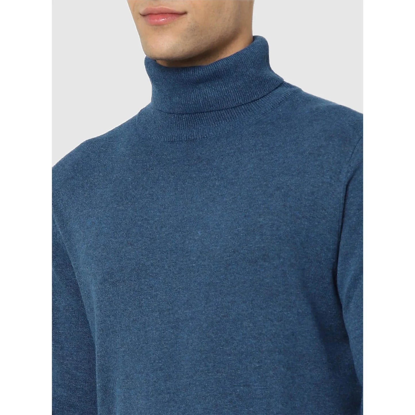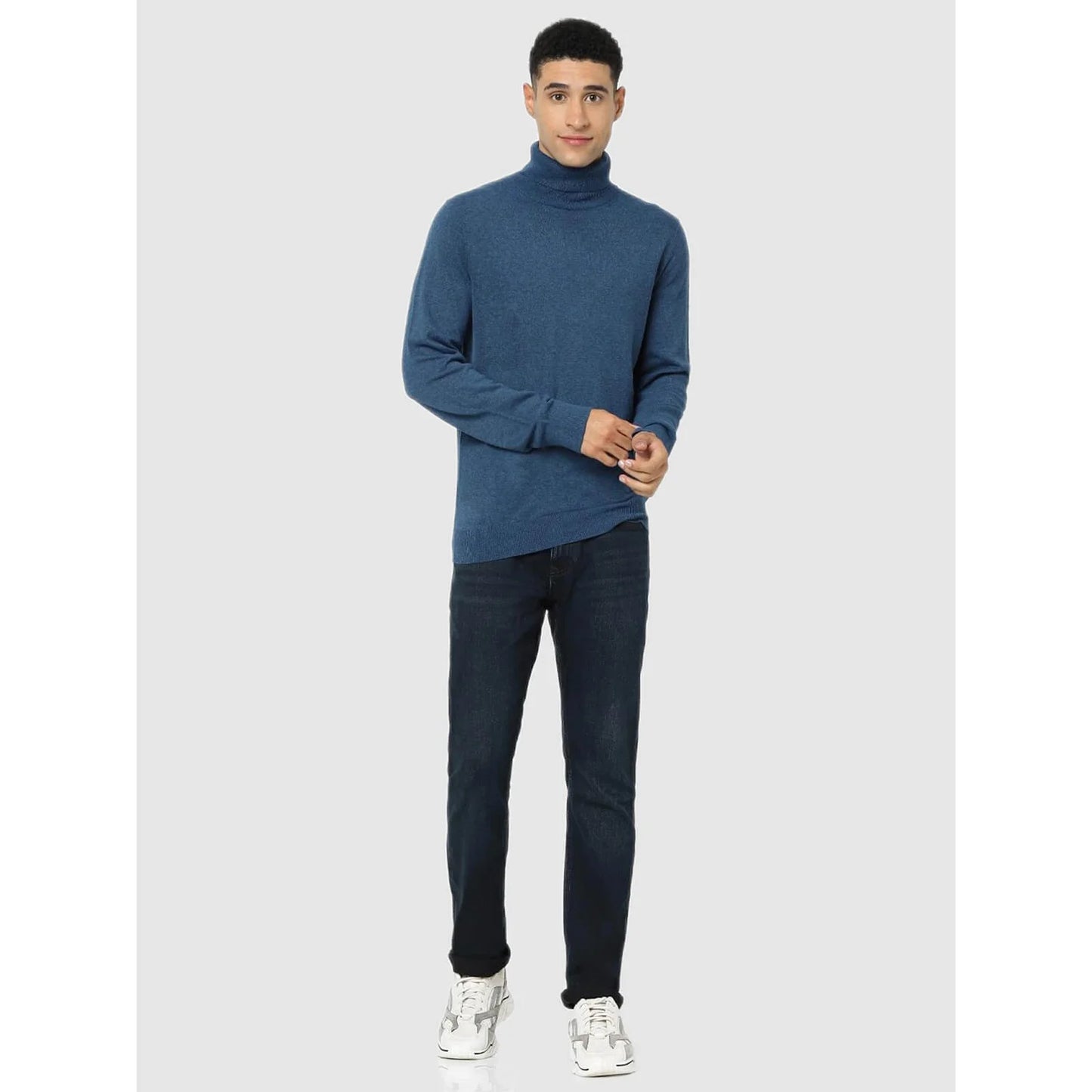 Celio* Solid Regular Fit Cotton-Blend Blue Sweater
