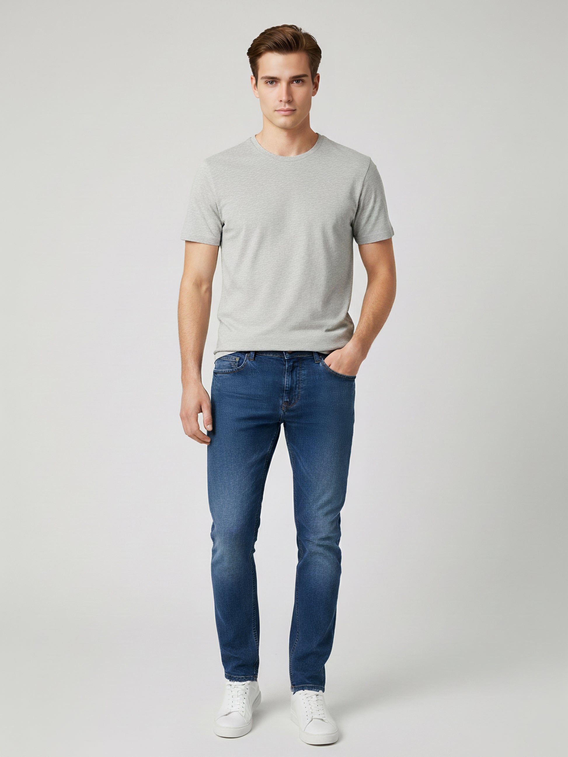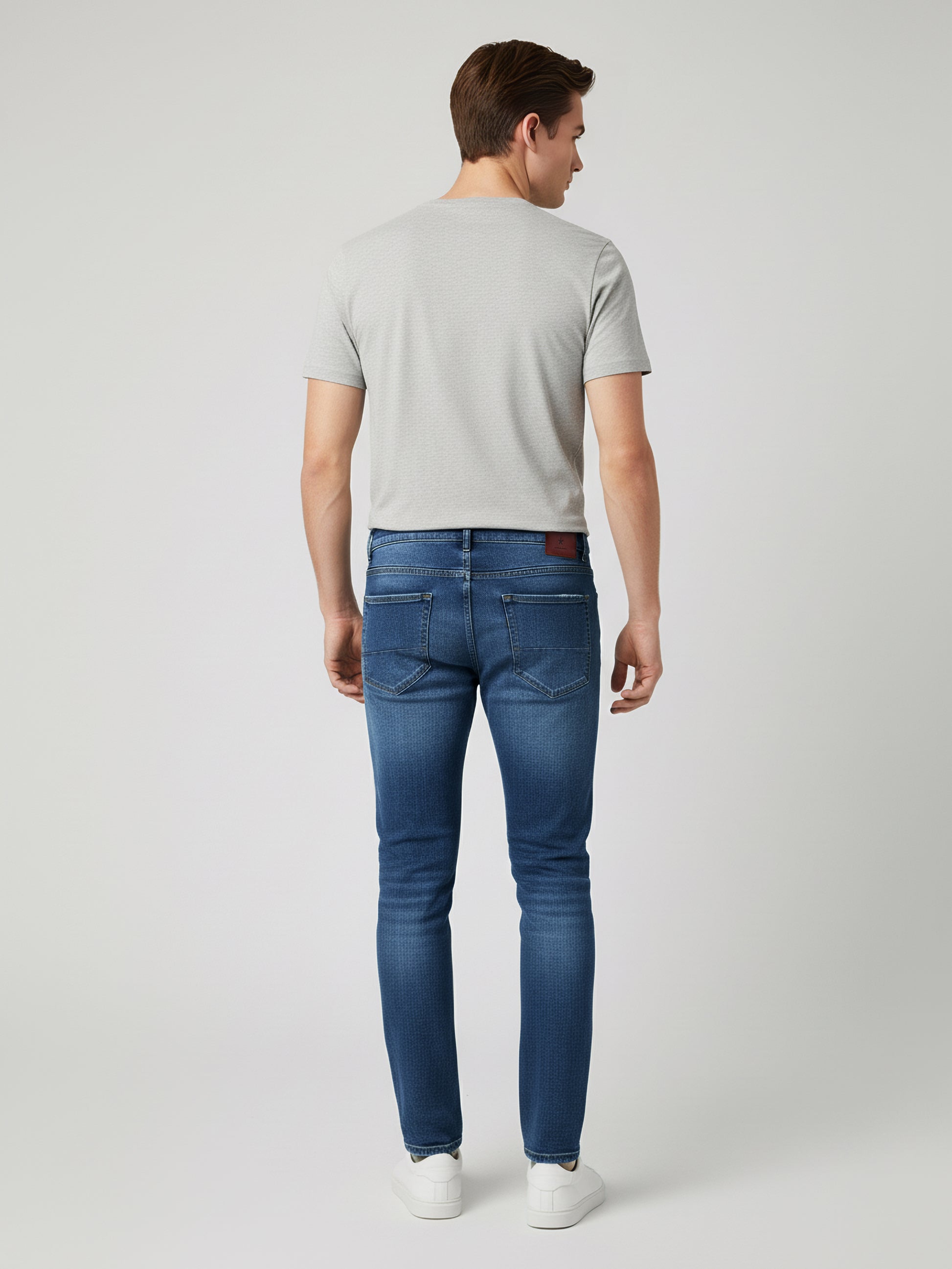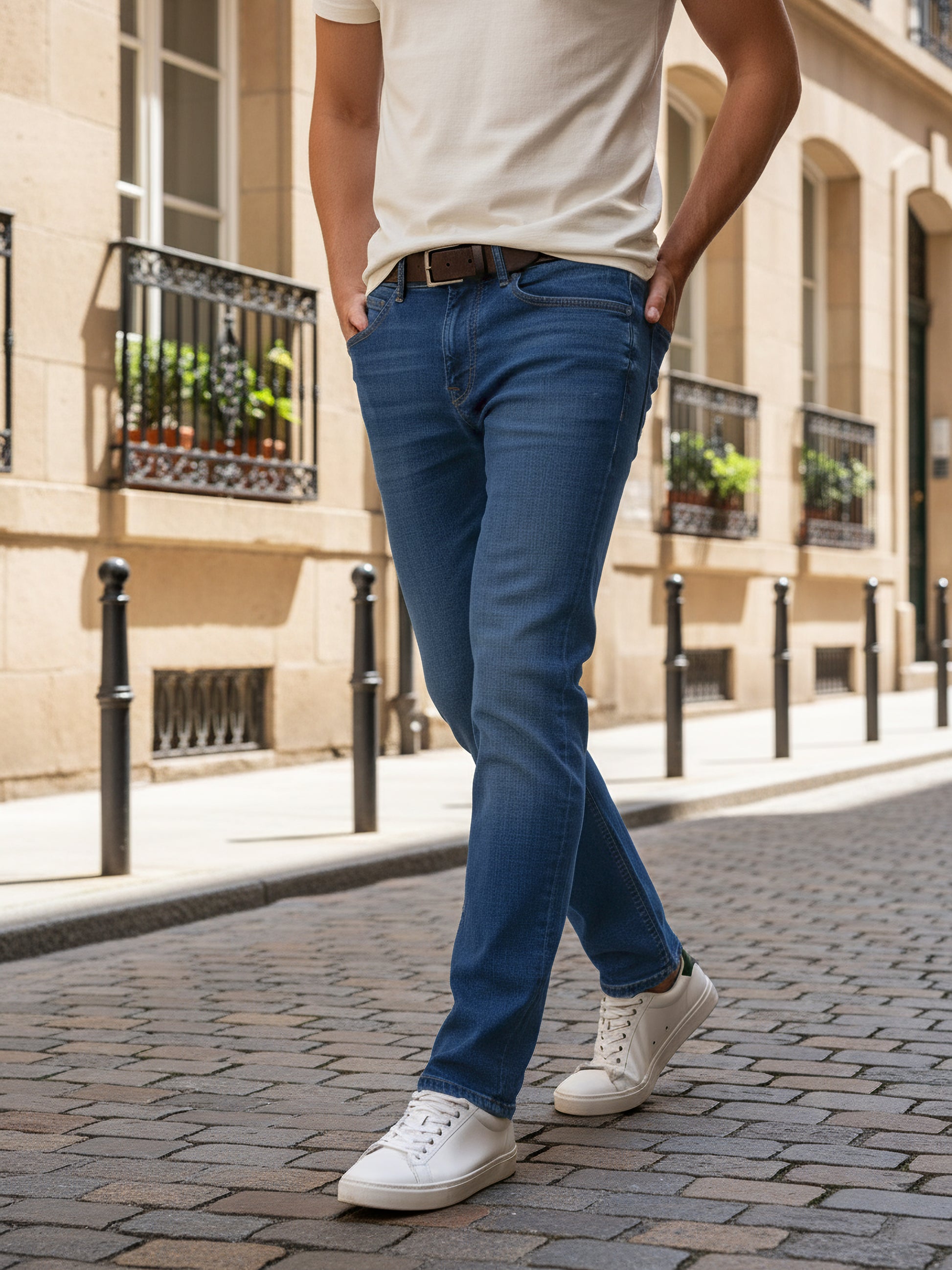 Discover Celio's blue solid slim fit jeans, crafted from a comfortable cotton-blend twill fabric. Ideal for casual outings, these stylish jeans offer a modern look for men. Disclaimer: All other items in the image are only for display purposes and will not be a part of the delivery content. Product colour may slightly vary due to photographic lighting sources. Country of Origin - India.