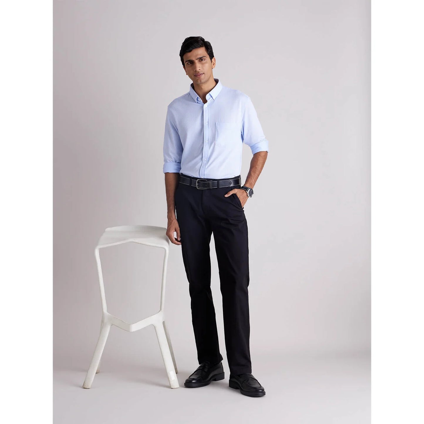 Celio* Striped Regular Fit Cotton-Blend Blue Formal Shirt