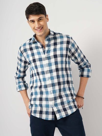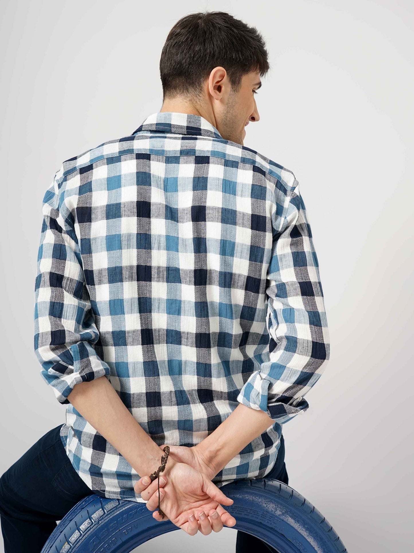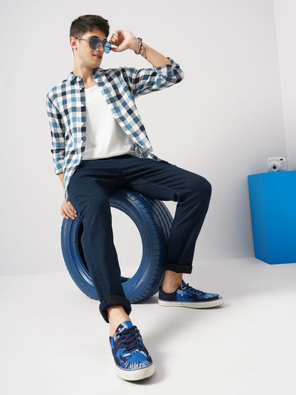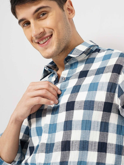 Celio* Checked Regular Fit Cotton Blue Shirt