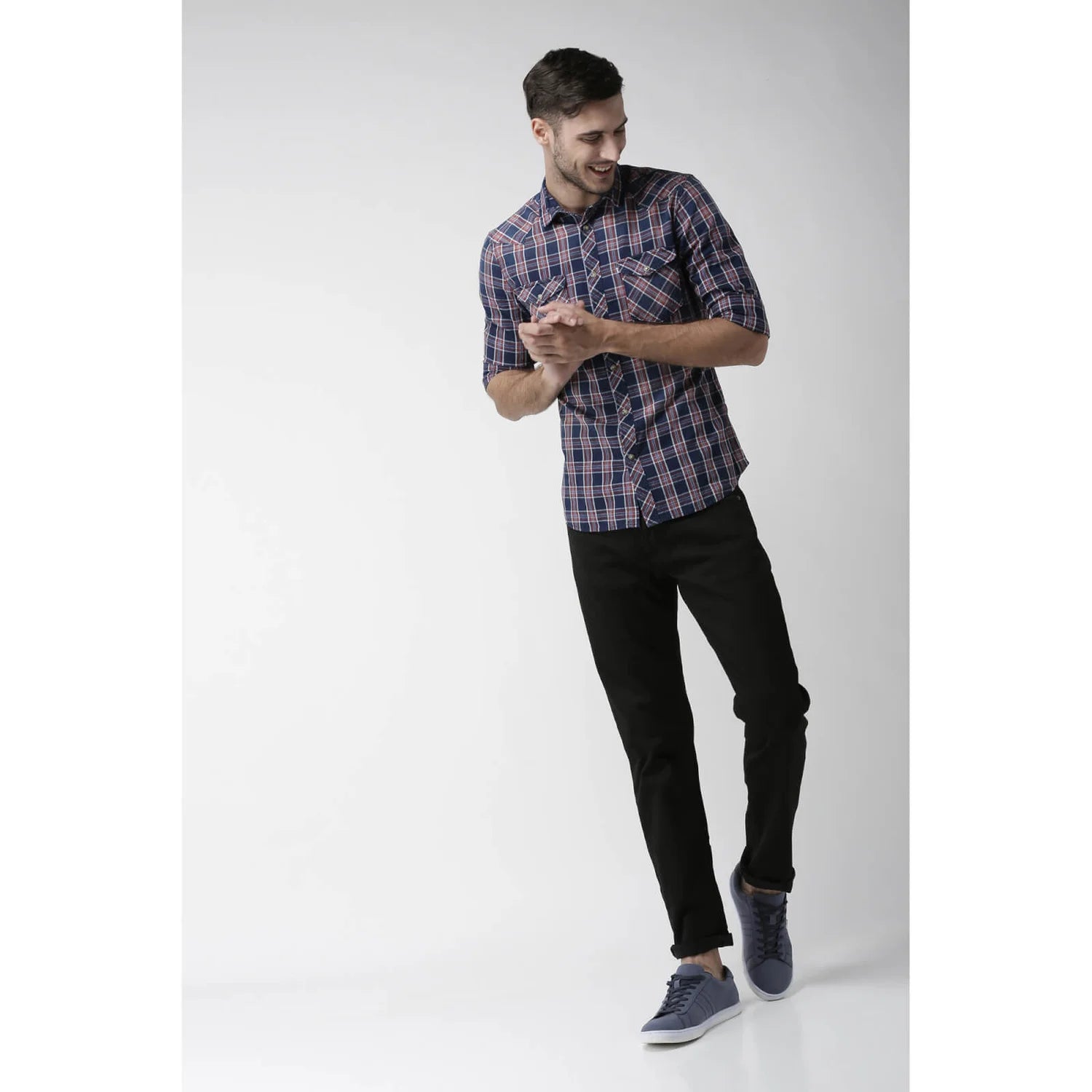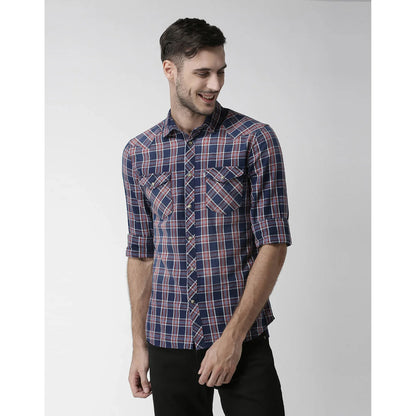 Celio* Checked Regular Fit Cotton Blue Shirt