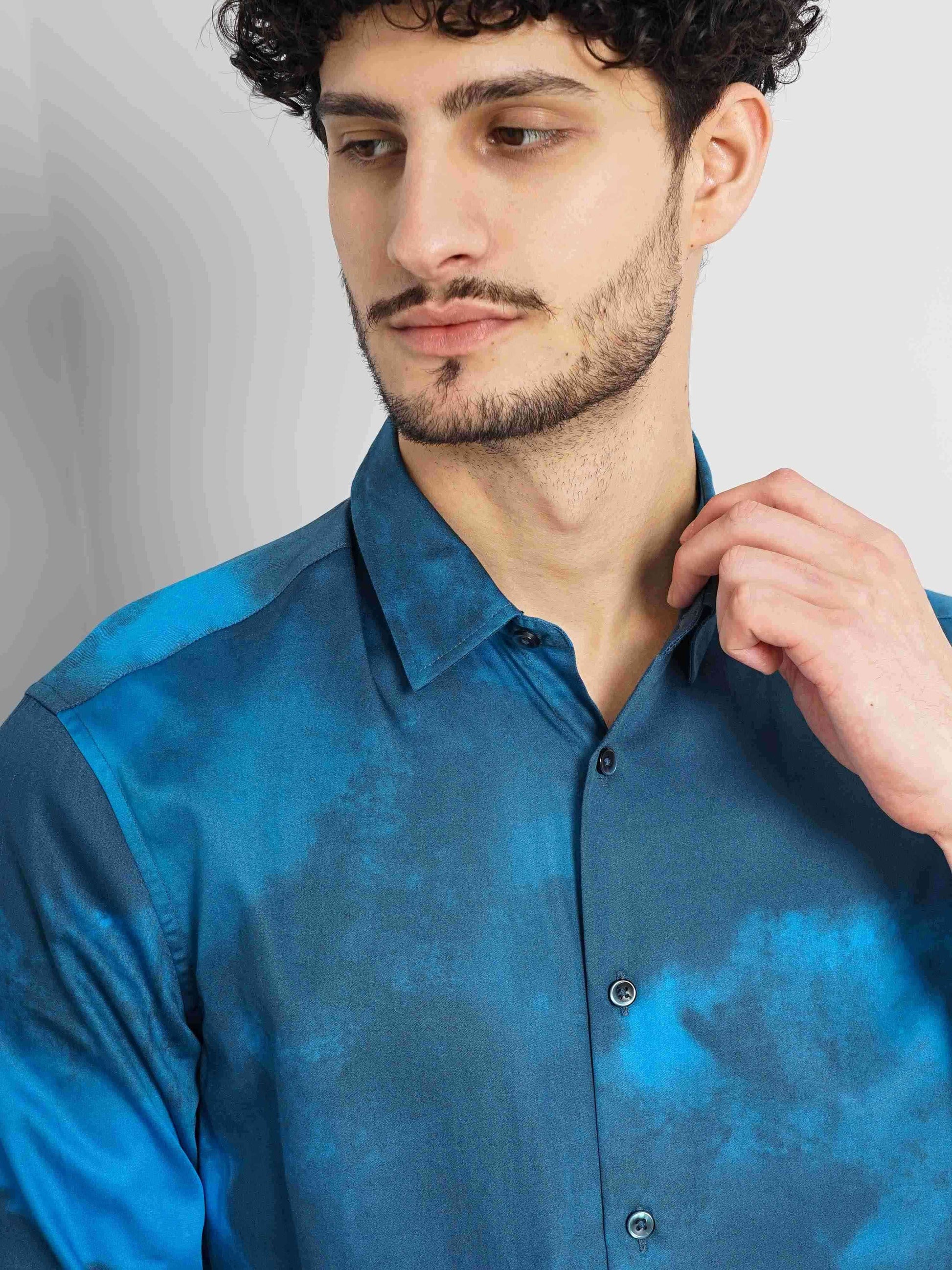 Celio Men Blue Dyed Regular Fit Cotton Shirts