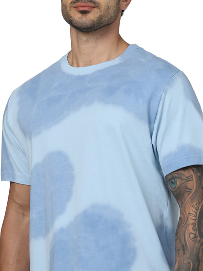 Elevate your casual wardrobe with the Celio Men Blue Round Neck T-shirt. Crafted from soft cotton, it features a stylish all-over print and short sleeves for a trendy look. Disclaimer: All other items in the image are only for display purposes and will not be a part of the delivery content. Product colour may slightly vary due to photographic lighting sources. Country of Origin - India.