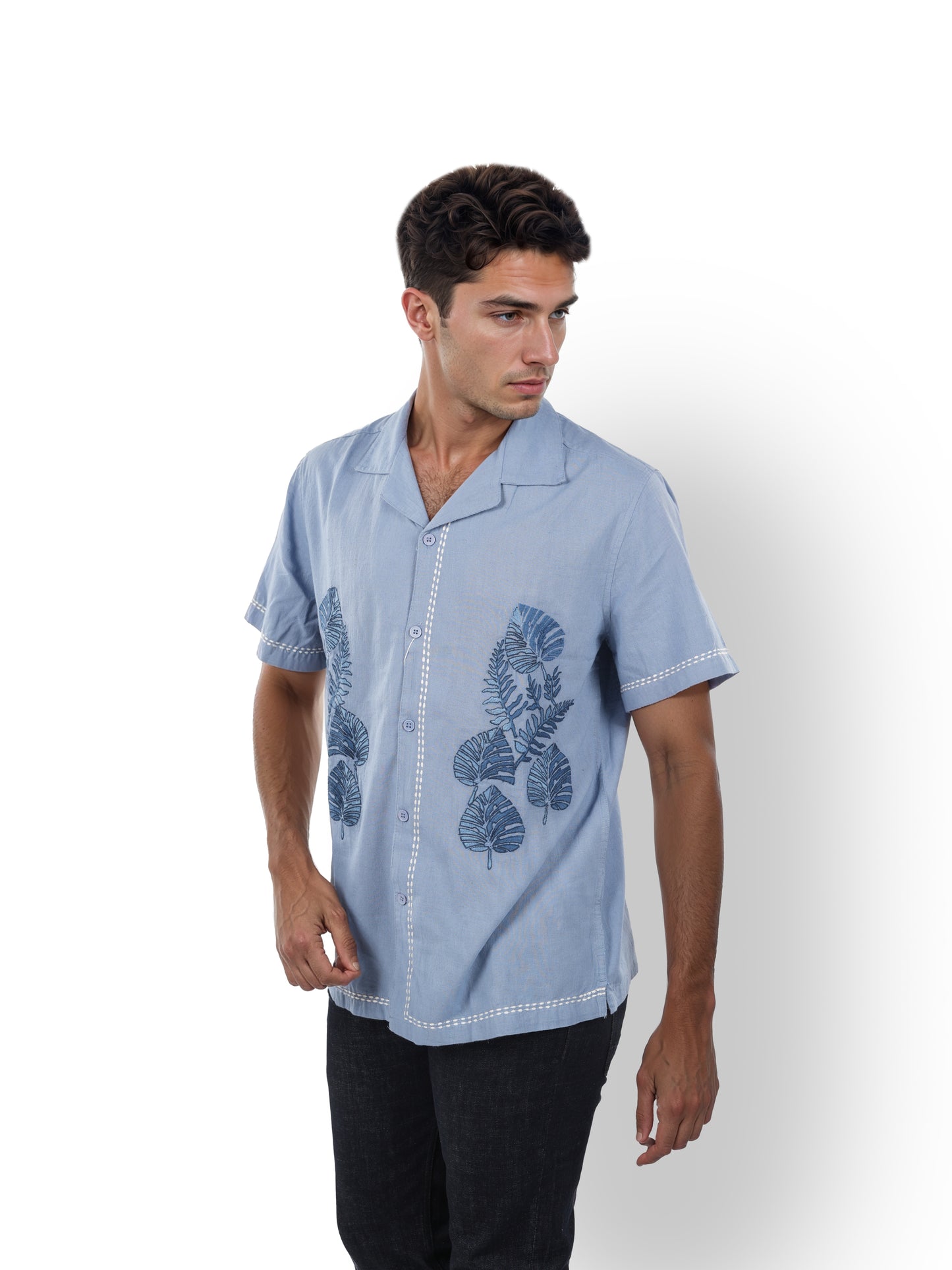 Discover the Celio Men Blue Cuban Collar Shirt, crafted from breathable cotton. Perfect for casual occasions, this stylish regular fit shirt features short sleeves and a vibrant print. Disclaimer: All other items in the image are only for display purposes and will not be a part of the delivery content. Product colour may slightly vary due to photographic lighting sources. Country of Origin - India.