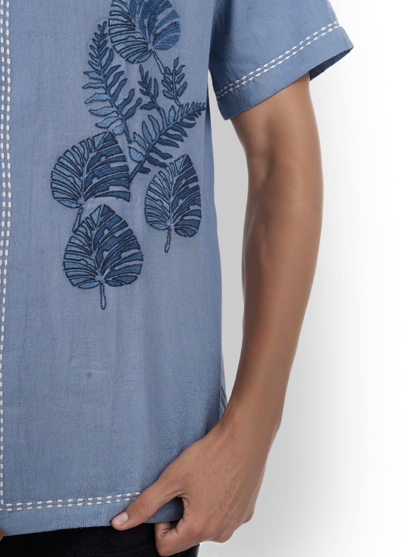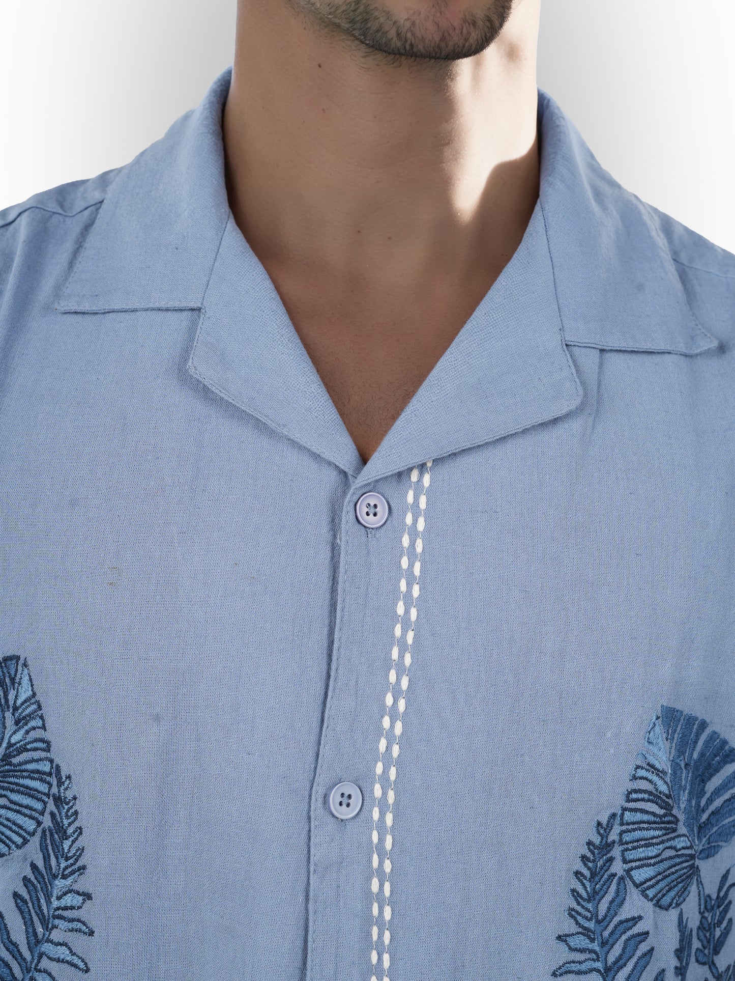Celio* Embroidered Regular Fit Cotton Blue Shirt