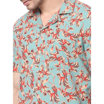 Celio* Floral Regular Fit Cotton Blue Shirt