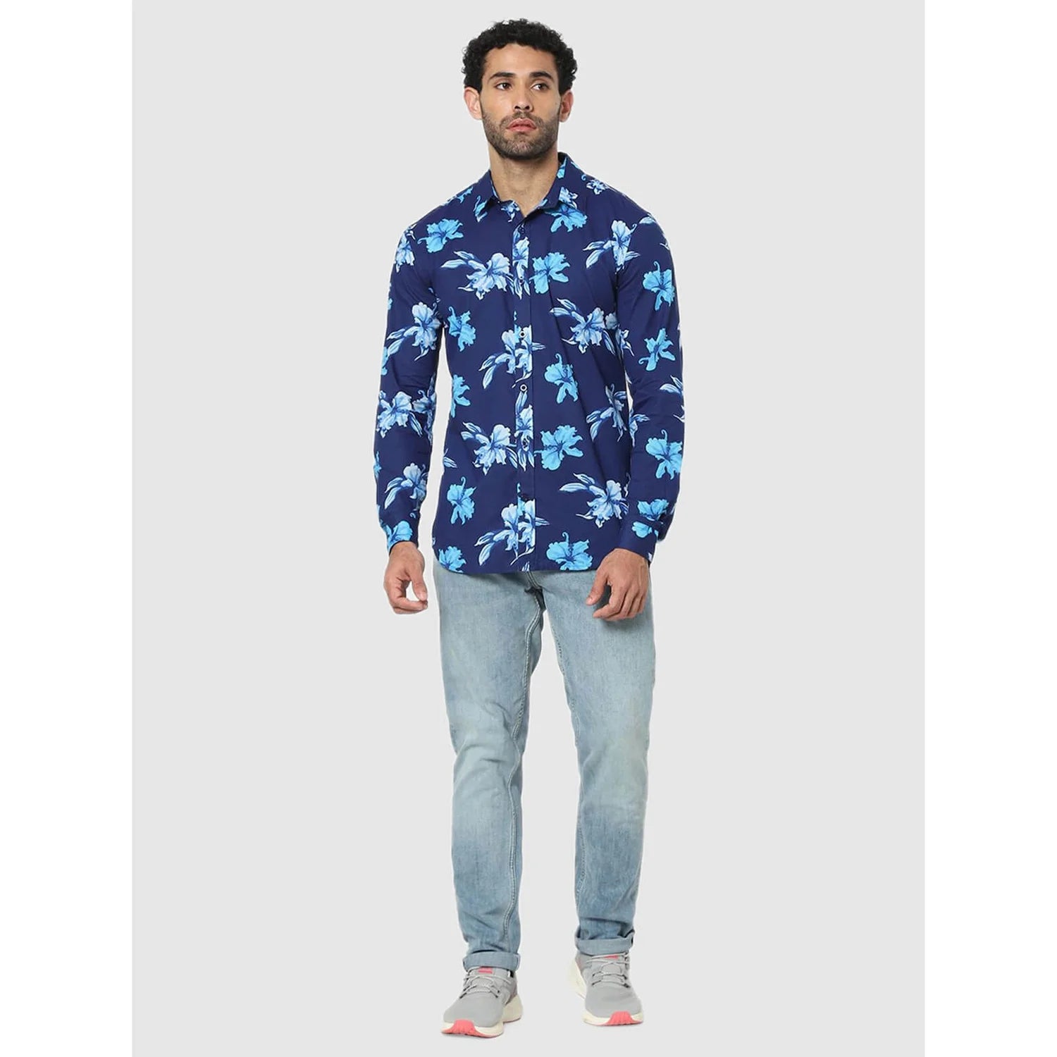 Celio* Floral Regular Fit Cotton Blue Shirt