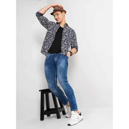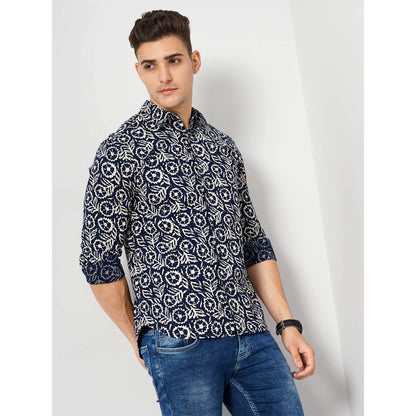 Celio* Floral Regular Fit Cotton Blue Shirt