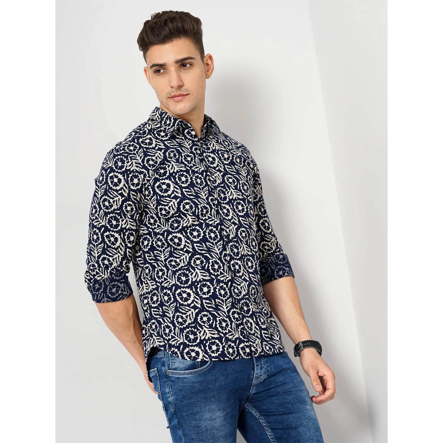 Elevate your casual wardrobe with the Celio Navy Cotton Contemporary Shirt. This Blue-colored, long-sleeve shirt offers a stylish look for men, crafted from comfortable cotton. Disclaimer: All other items in the image are only for display purposes and will not be a part of the delivery content. Product colour may slightly vary due to photographic lighting sources. Country of Origin - India.