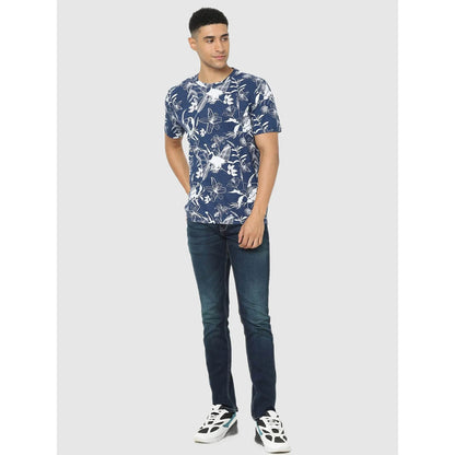 Celio* Floral Regular Fit Cotton Blue T-Shirt