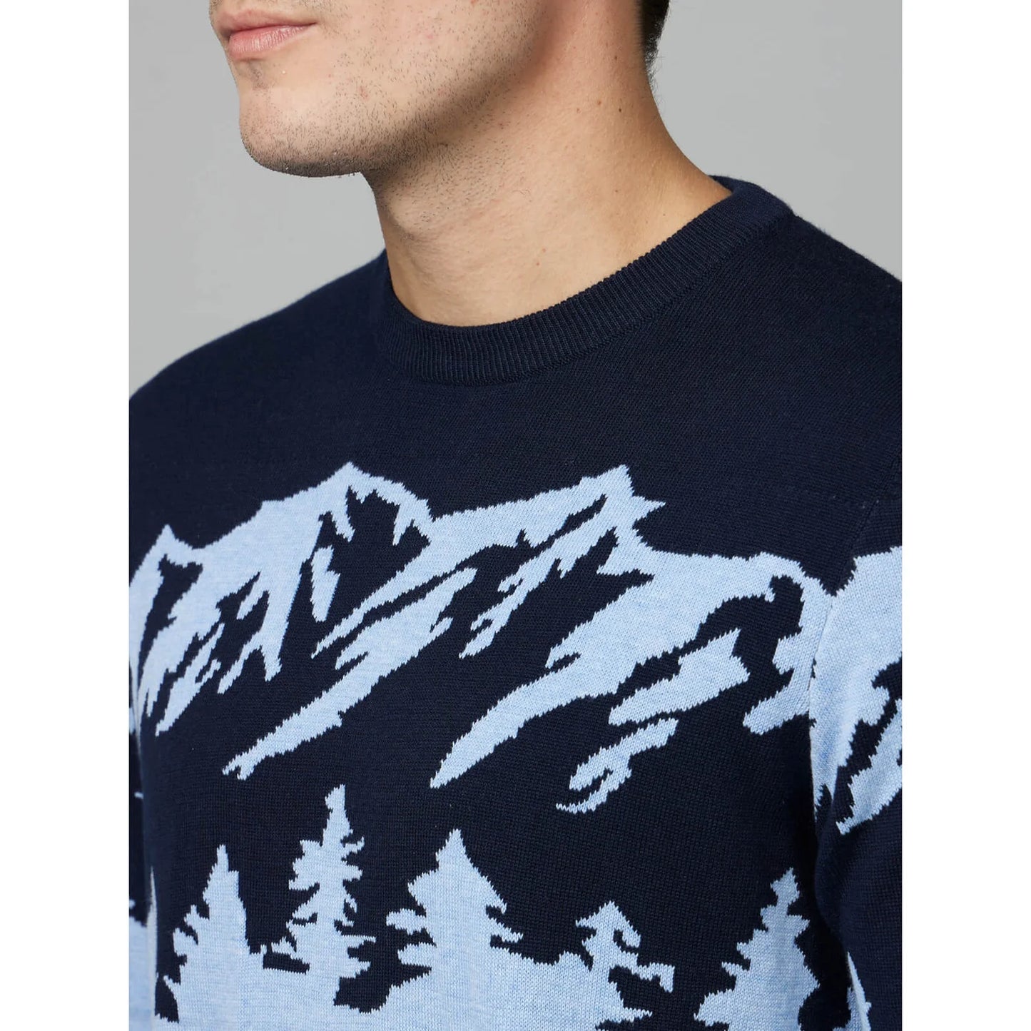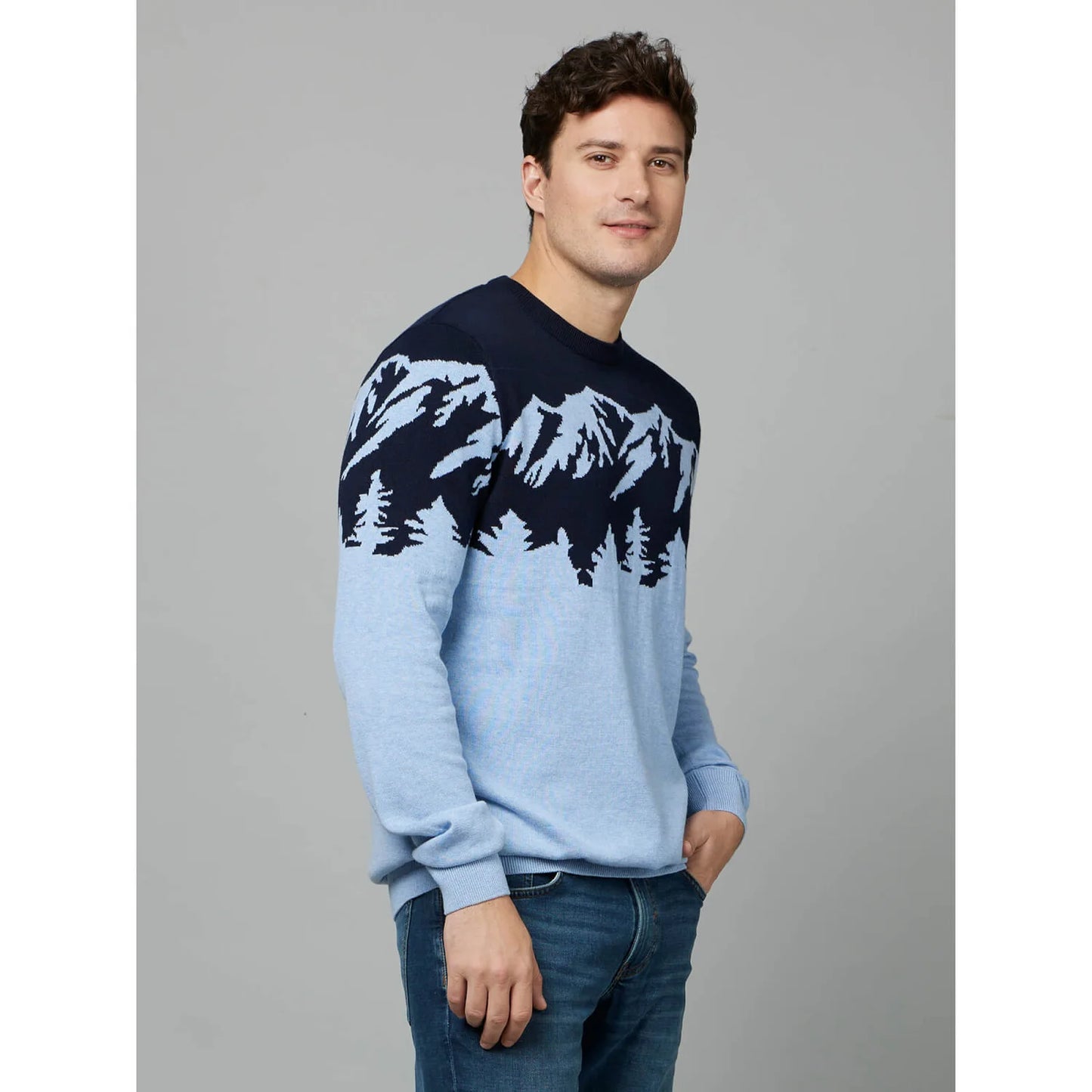 Celio* Graphics Regular Fit Cotton Blue Sweater