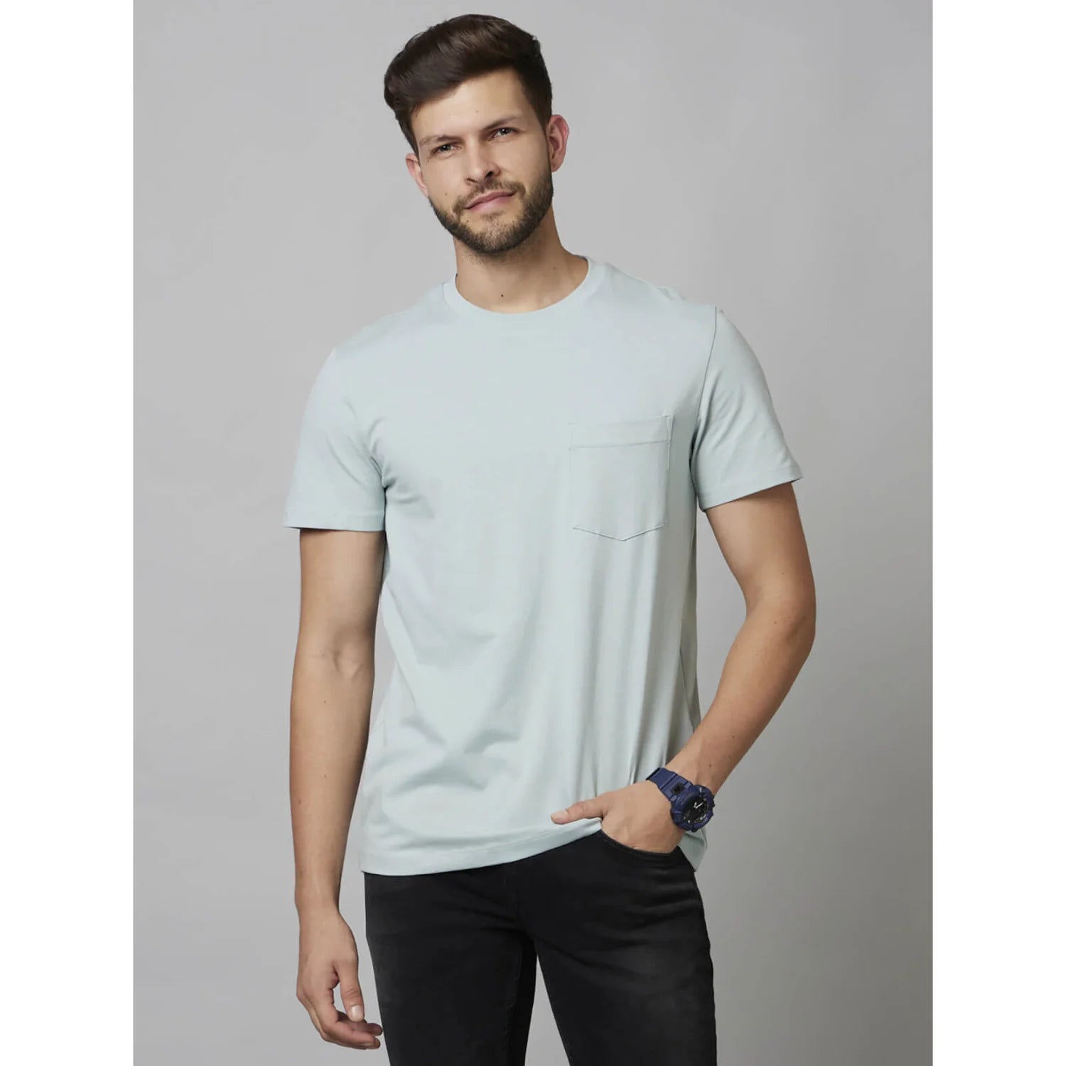 Celio Men’s Solid Blue T-Shirt in a comfortable cotton-poly blend, perfect for casual occasions. Features short sleeves for a relaxed style. Disclaimer: All other items in the image are only for display purposes and will not be a part of the delivery content. Product colour may slightly vary due to photographic lighting sources. Country of Origin - India.