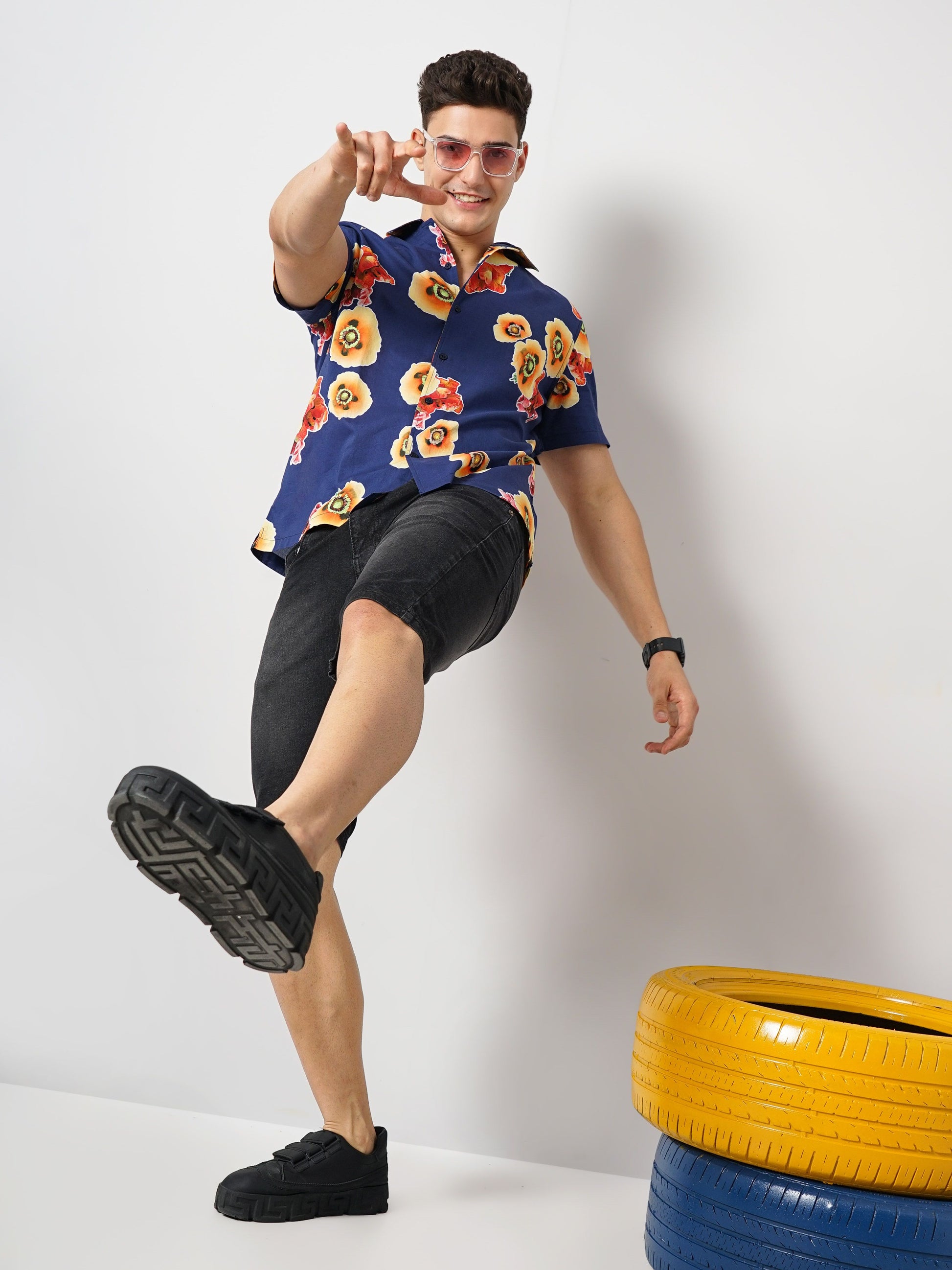 Elevate your casual wardrobe with the Celio Men Navy Blue Solid Shirt. Crafted from soft cotton, it features short sleeves and is perfect for laid-back outings. Disclaimer: All other items in the image are only for display purposes and will not be a part of the delivery content. Product colour may slightly vary due to photographic lighting sources. Country of Origin - India.