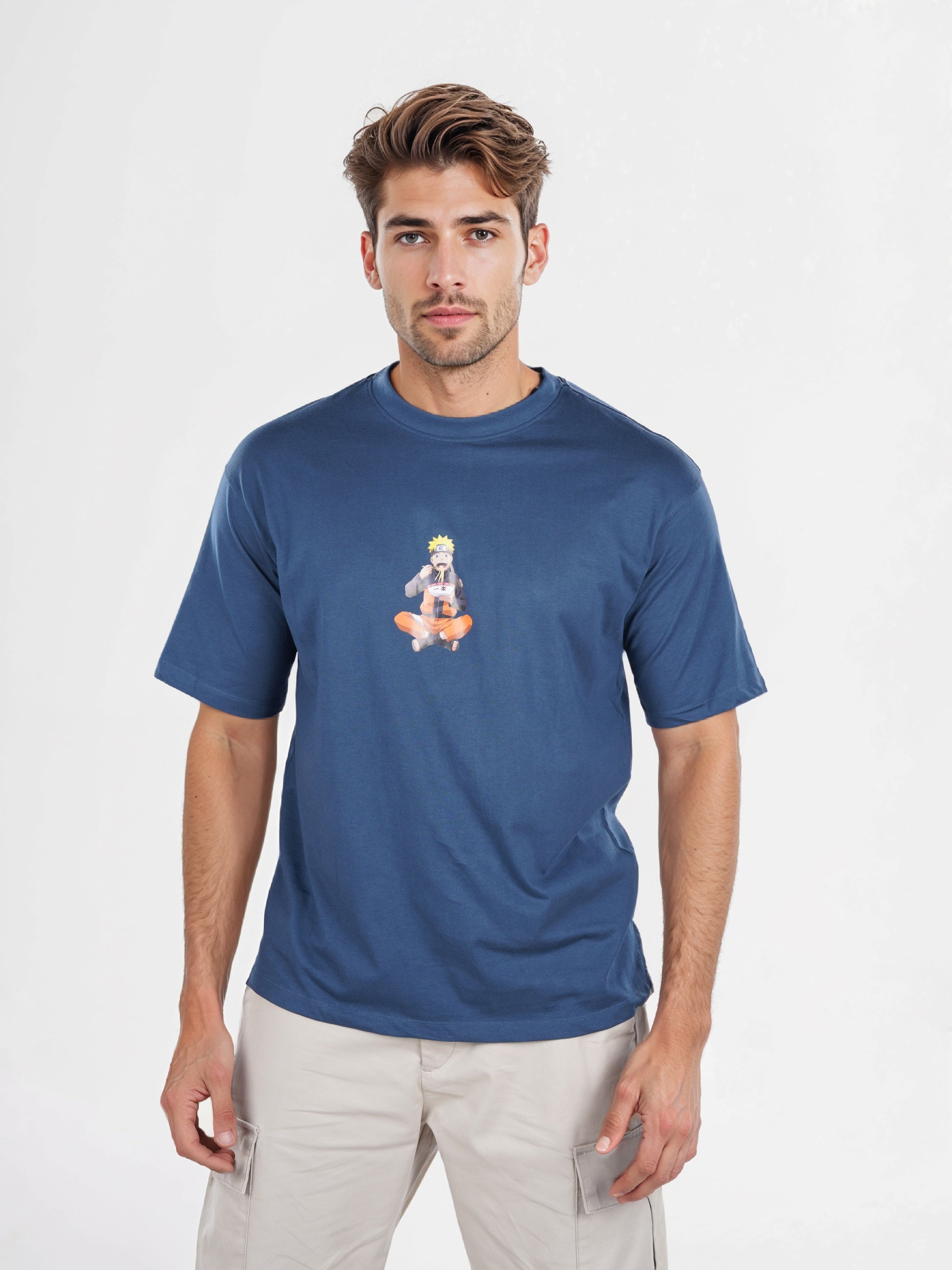 Celio* Naruto Regular Fit Cotton Blue T-Shirt