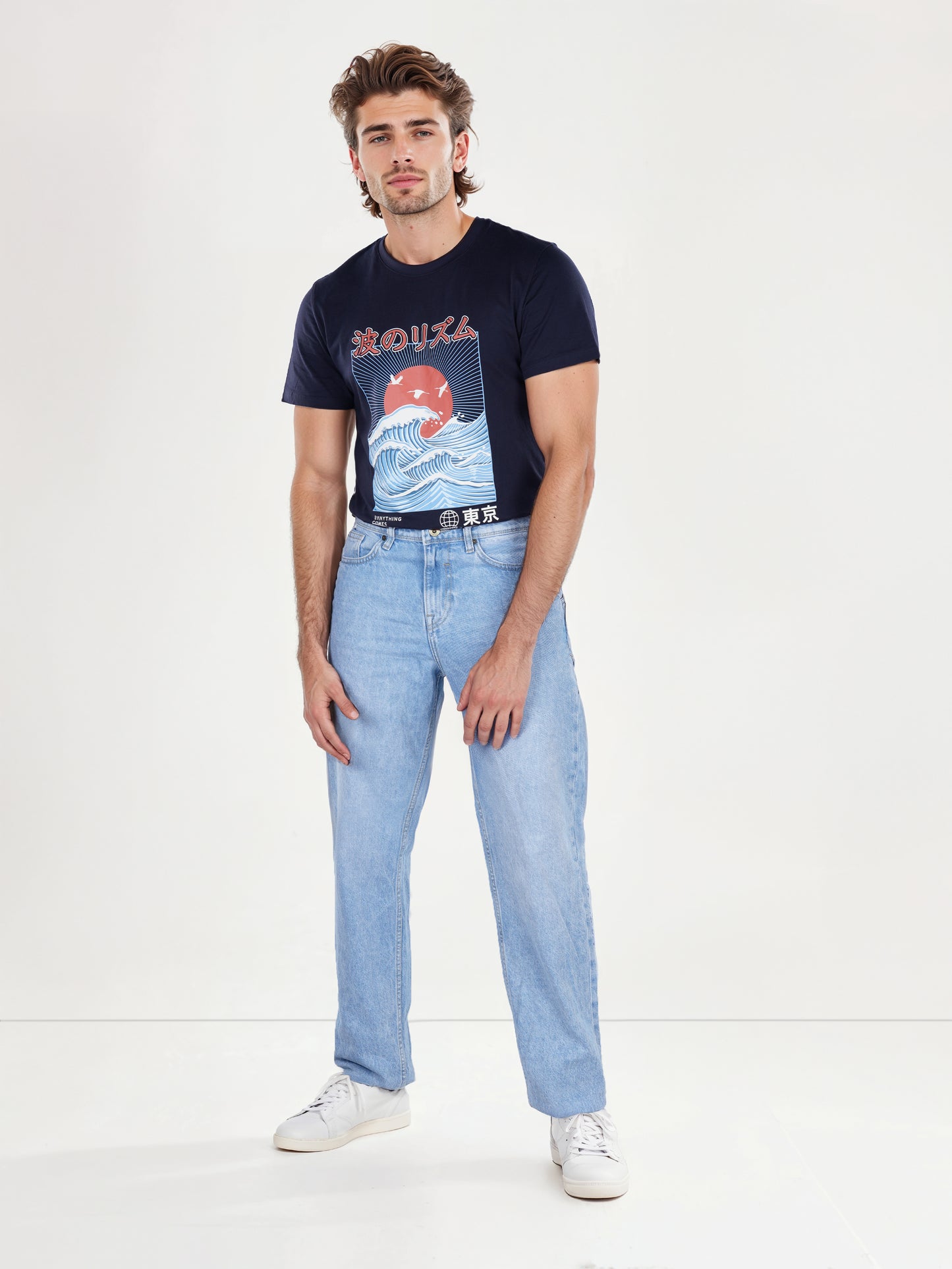 Elevate your casual wardrobe with Celio's blue solid loose fit cotton Jean for men. Crafted for comfort and style, these Jean are ideal for everyday wear. Disclaimer: All other items in the image are only for display purposes and will not be a part of the delivery content. Product colour may slightly vary due to photographic lighting sources. Country of Origin - India.