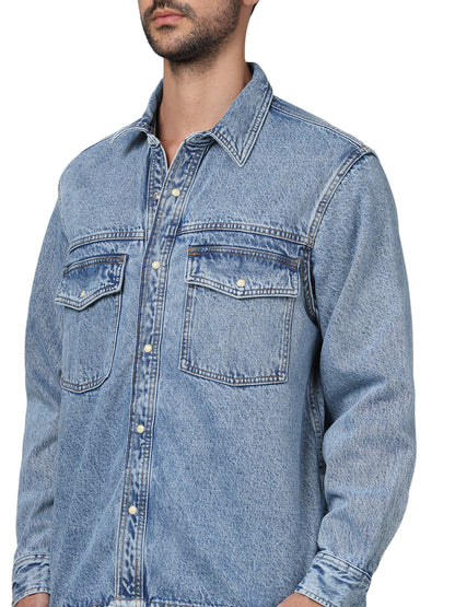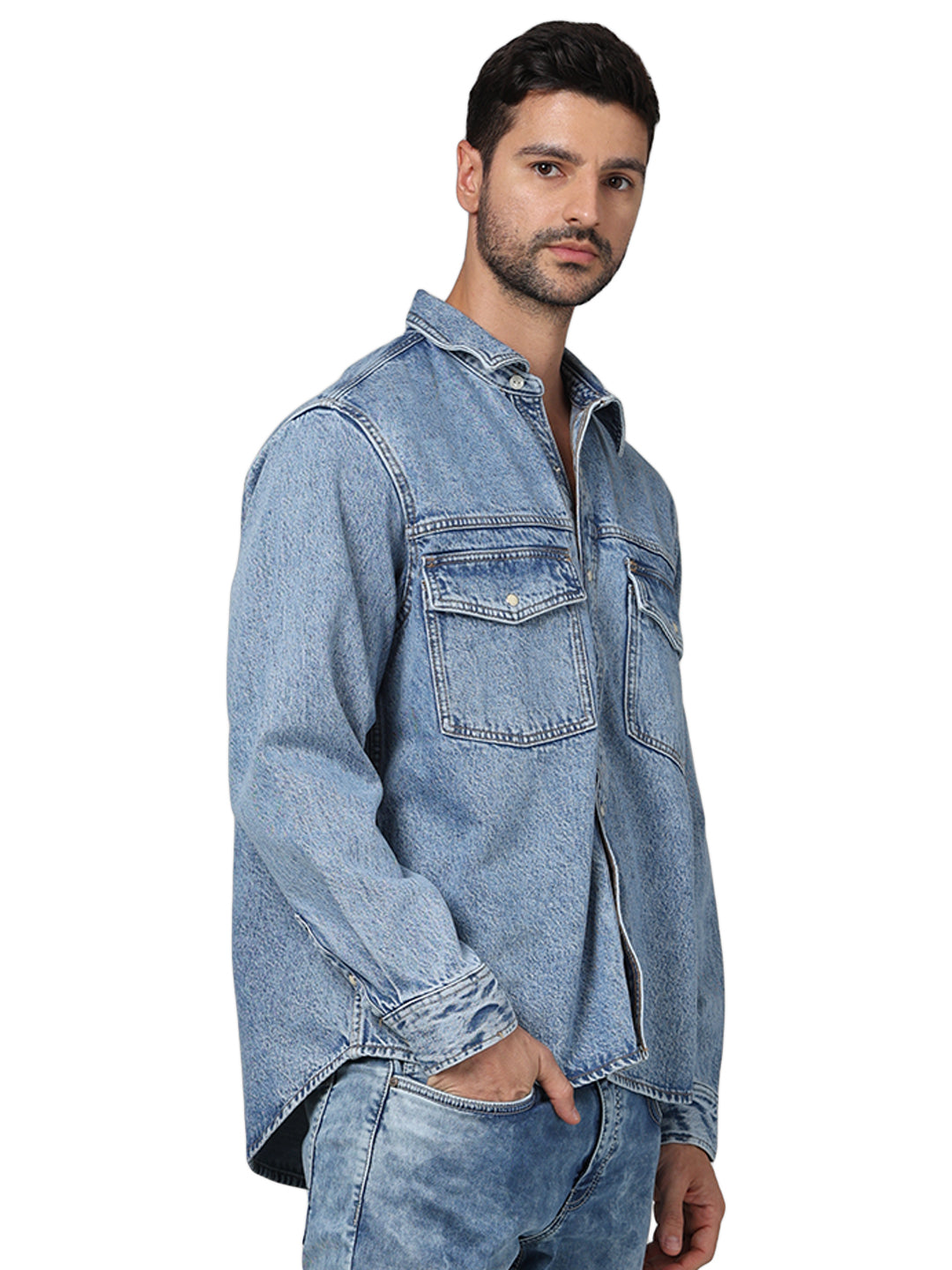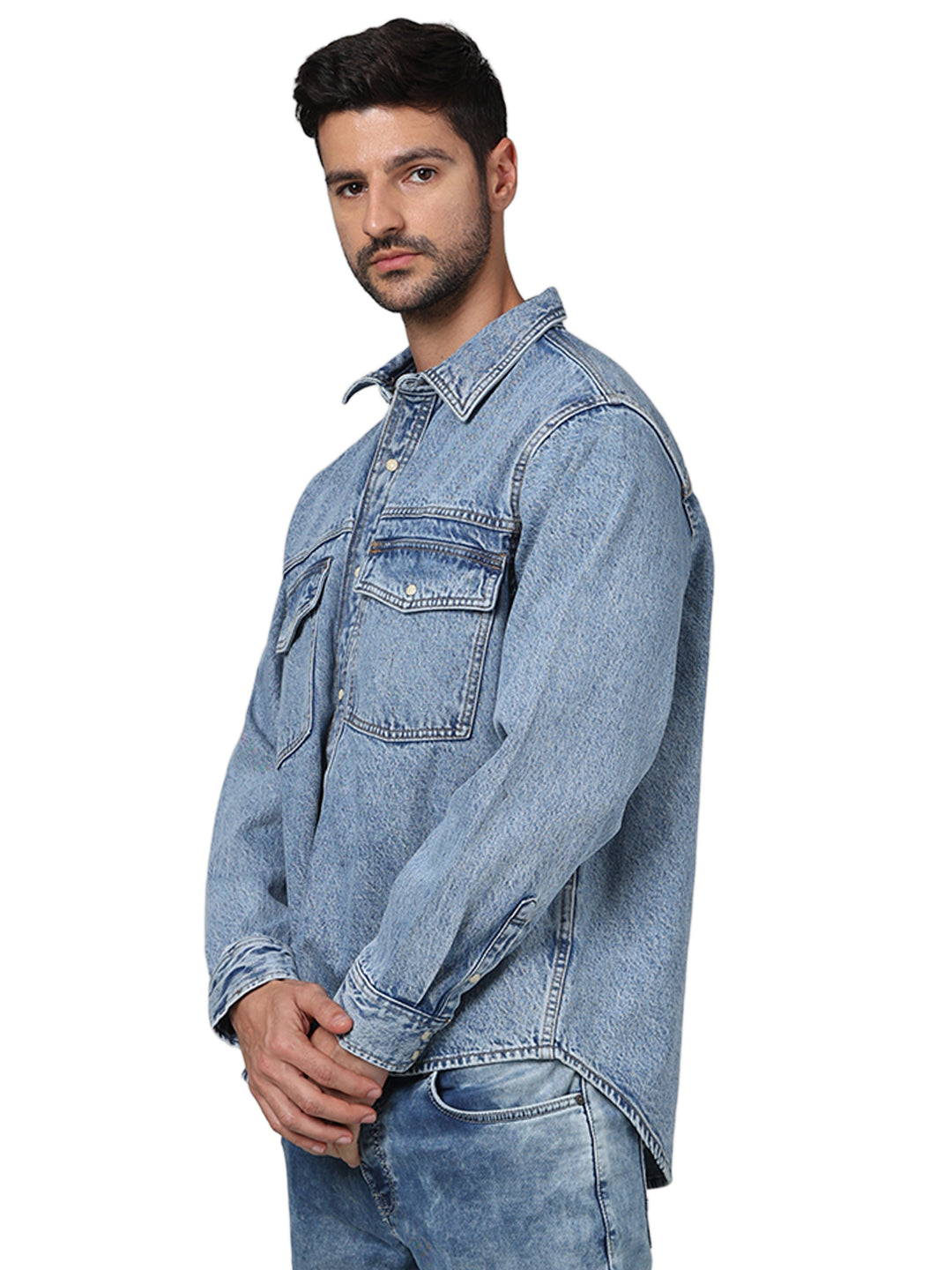 Elevate your casual wardrobe with the Celio Men Blue Spread Collar Solid Oversized Cotton Casual Shirt. This long-sleeve shirt offers comfort and style for any casual occasion. Disclaimer: All other items in the image are only for display purposes and will not be a part of the delivery content. Product colour may slightly vary due to photographic lighting sources. Country of Origin - India.