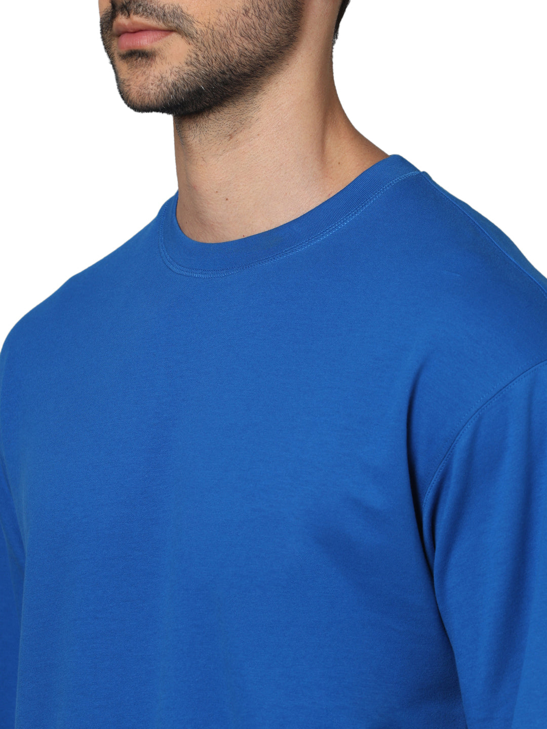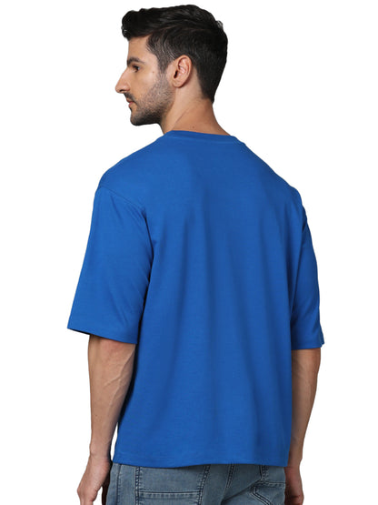 Celio* Solid Oversized Cotton Blue T-Shirt