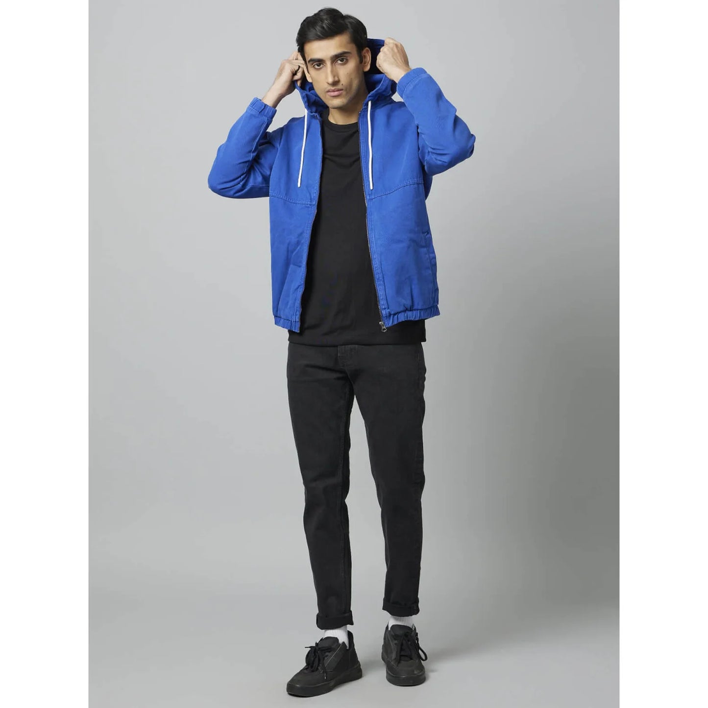 Celio* Solid Regular Fit Cotton Blue Jacket