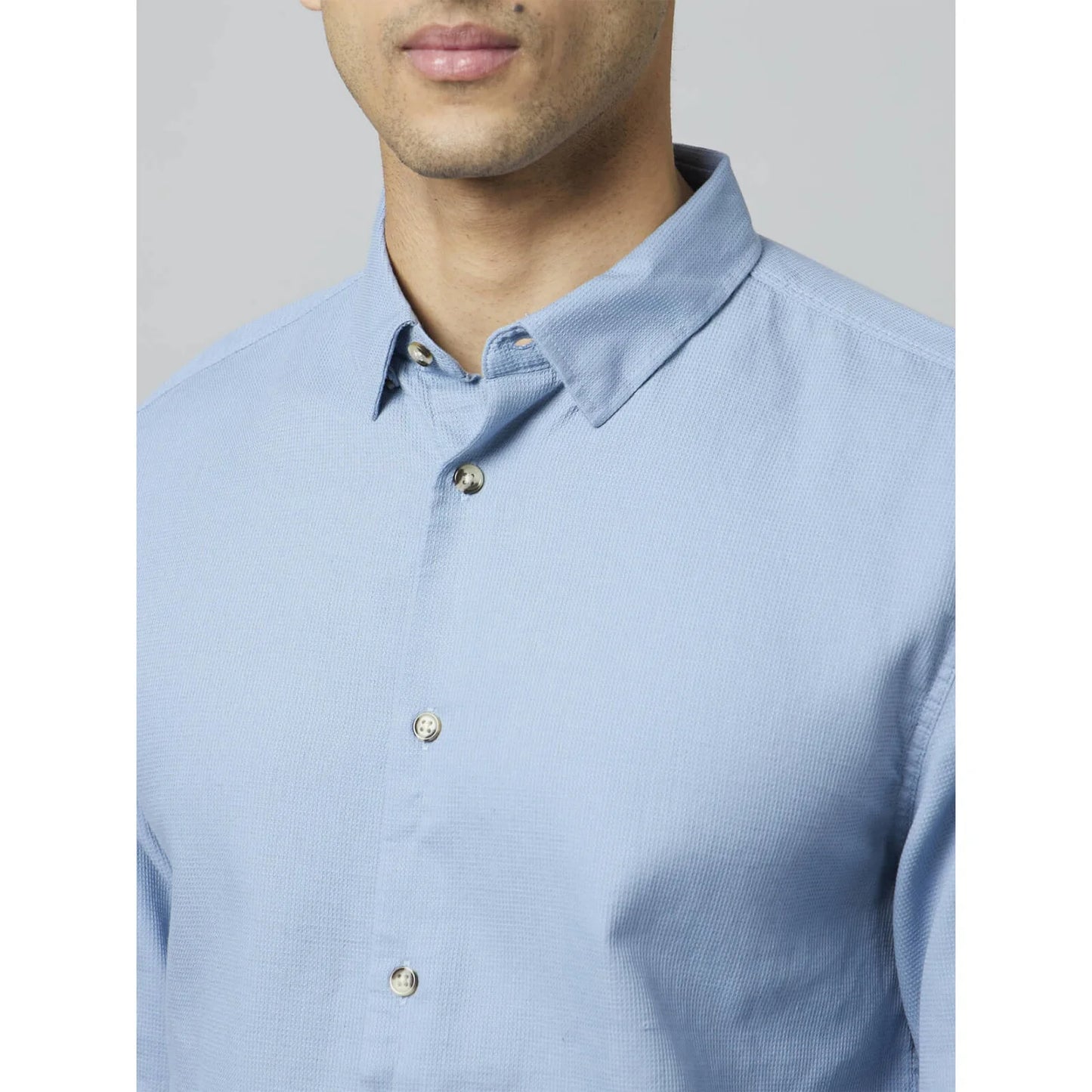 Celio* Solid Regular Fit Cotton Blue Shirt