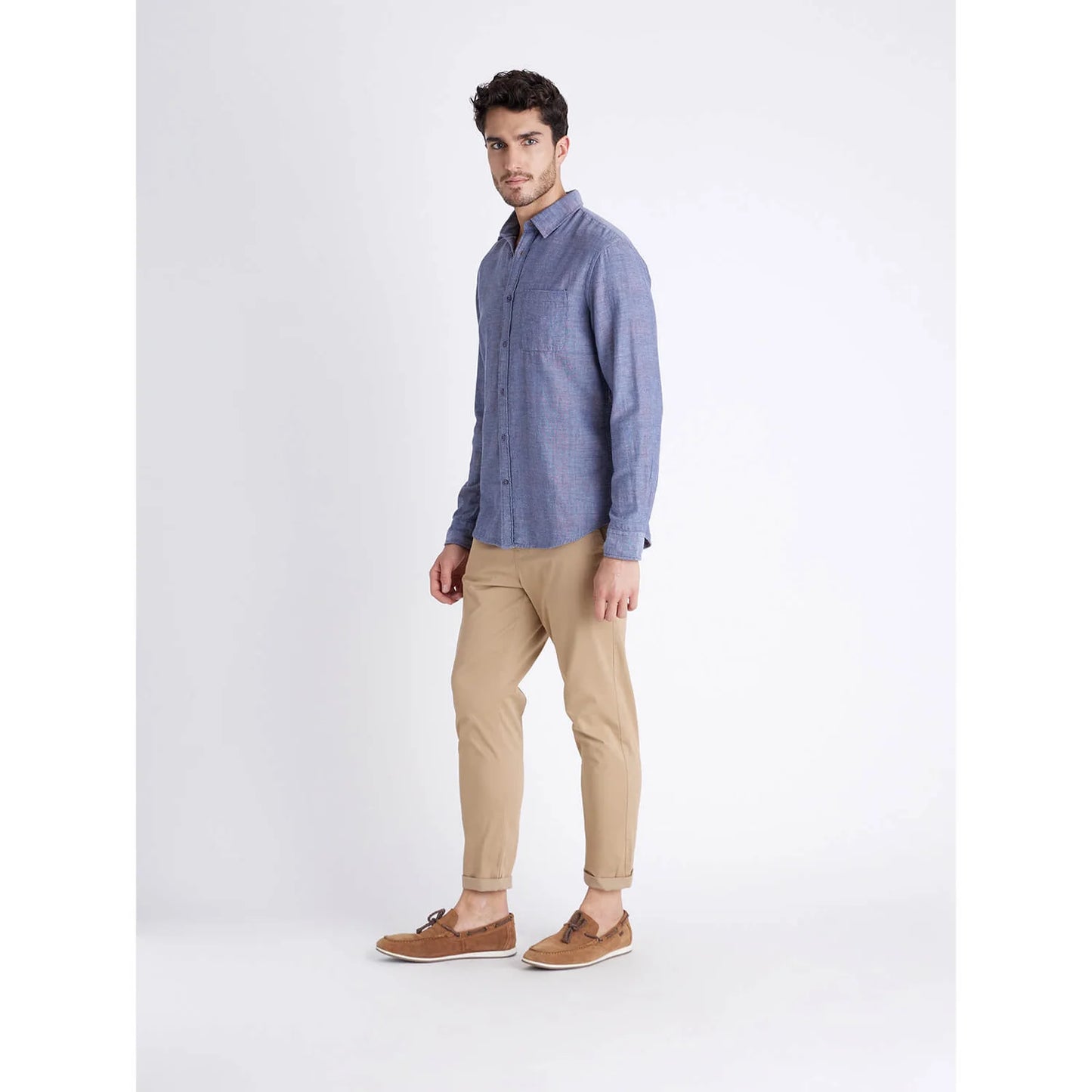 Elevate your casual wardrobe with the Celio Men's Solid Blue Long Sleeve Shirt. Crafted from soft cotton, this timeless piece offers comfort and style for any occasion. Disclaimer: All other items in the image are only for display purposes and will not be a part of the delivery content. Product colour may slightly vary due to photographic lighting sources. Country of Origin - India.