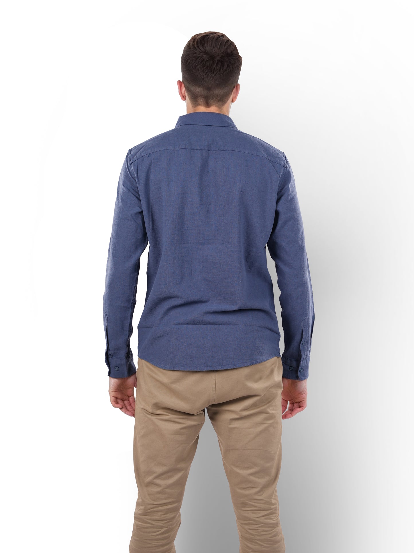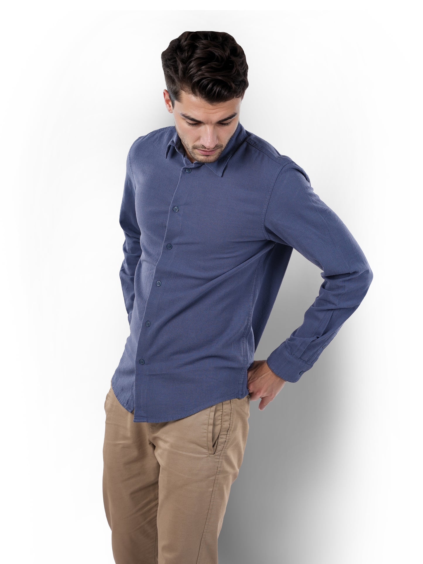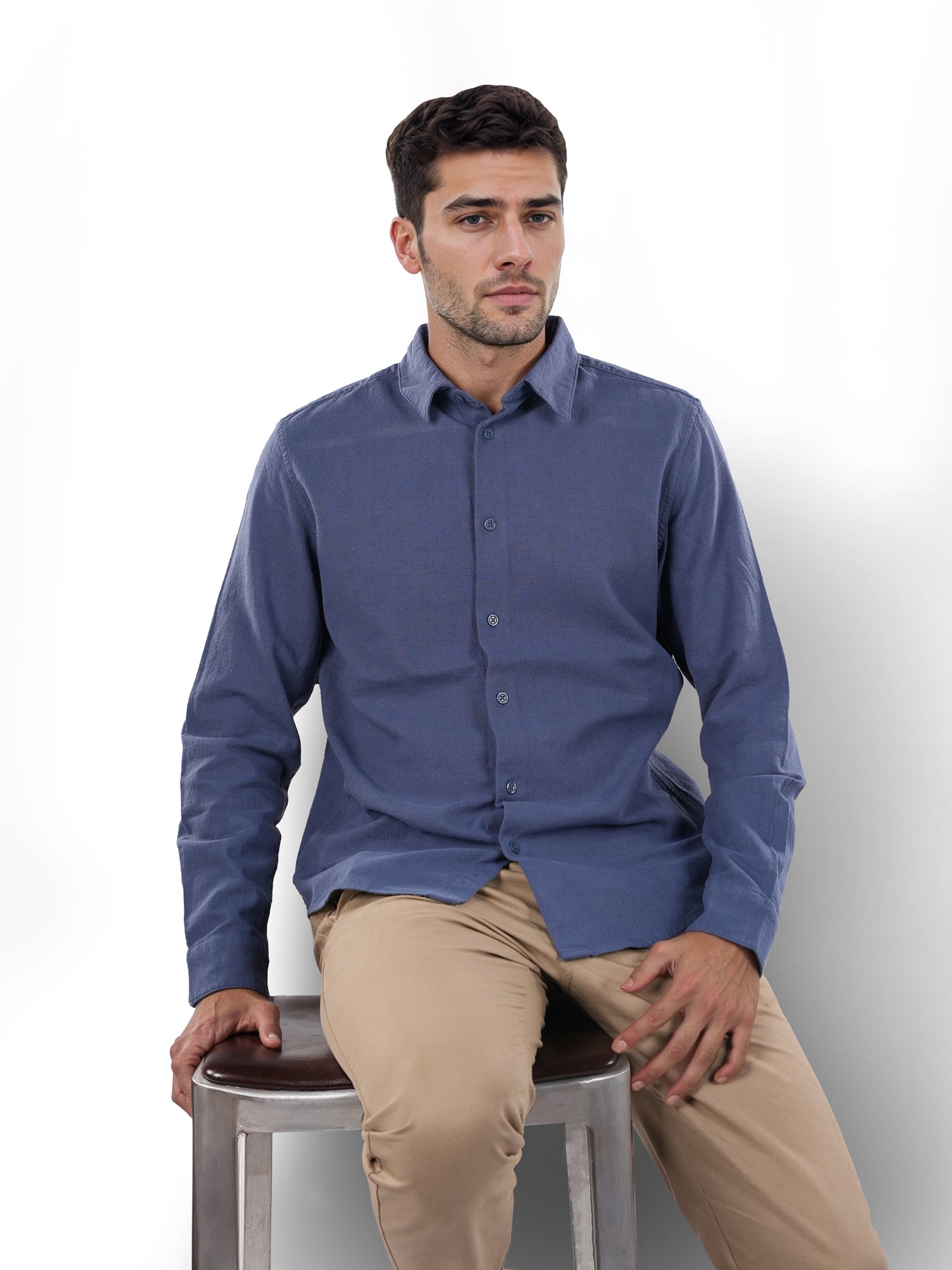 Discover style and comfort with Celio's blue spread collar shirt for men. Made from soft cotton, it features long sleeves, perfect for casual occasions. Disclaimer: All other items in the image are only for display purposes and will not be a part of the delivery content. Product colour may slightly vary due to photographic lighting sources. Country of Origin - India.